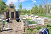 Уборка территории вокруг памятника погибшим воинам - землякам.