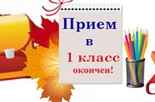 Прием учащихся в 1 класс на 2020-2021 учебный год завершен, в связи с отсутствием свободных мест.