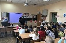 В гостях пришкольного лагеря сотрудники ГИБДД с профилактической беседой по правилам дорожного движения.