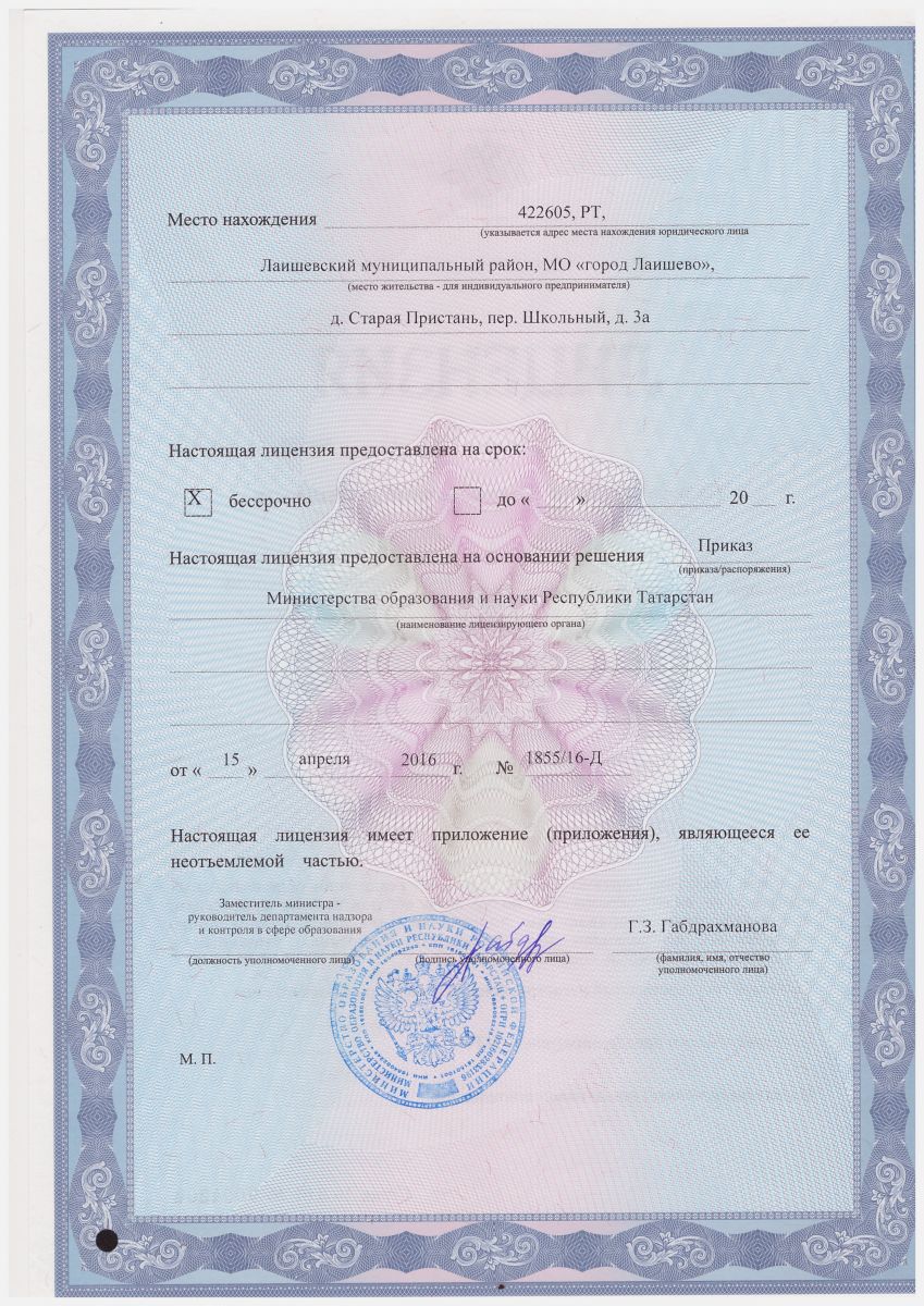 | Адрес: | 422605 РТ, Лаишевский муниципальный район, МО "город Лаишево" д. Старая Пристань, пер. Школьный,д. 3 а |