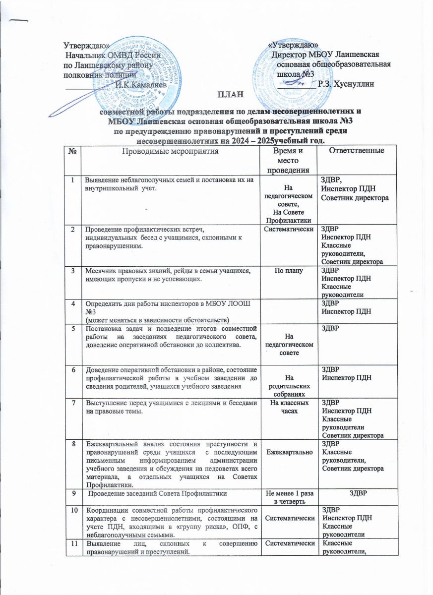 План совместной работы подразделения по делам несовершеннолетних и школы 1 стр. 2 стр