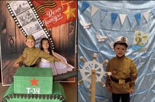 В преддверии Великого праздника -Дня Победы, в детском саду появились фотозоны. Они размещены на крыльце и в фойе. Любой желающий может сделать фото и подарить его как поздравительную открытку!