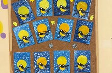 В фойе детского сада дети из группы "Клубнички" оранизовали выставку синичек!