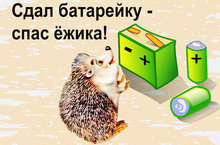 Уважаемые родители! Приглашаем Вас принять участие в экологической акции "Батарейки, сдавайтесь!". Акция приурочена к Всемирному Дню Земли. Подсчитано, что одна пальчиковая батарейка, беспечно выброшенная в мусорное ведро, может загрязнить 20 квадратных метров земли, а это территория обитания 2 деревьев, 2 кротов, 1 ежика и нескольких тысяч дождевых червей! Если у Вас дома есть использованные батарейки, приносите их в садик! Мы подготовили для них безопасное место! Давайте вместе спасать Землю,а заодно ежиков и кротов!