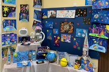 В честь Дня Космонавтики в "Ромашке" открылся "мини-музей Космонавтики",созданный нашими воспитанниками и их родителми. Чего здесь только нет!! И ракеты, и станции и космодром... Макеты, портреты, карты звездного неба...