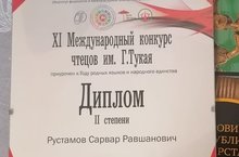 Учащийся 7 а класса Рустамов Сарвар занял 2 место в Международном конкурсе чтецов имени Габдуллы Тукая. Руководитель: Платонова Ф. Н.