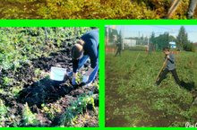 На приусадебном участке школы идет сбор урожая.