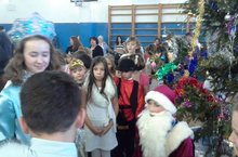 26 декабря в нашей школе прошли новогодние представления. Утро началось с новогодней сказки для начальной школы, которую подготовили ученики 4 класса вместе с классным руководителем Мусиной Н. С, под названием "Сказочное волшебство". А помогали ребятам учащиеся и других классов, представляя вниманию зрителей стихотворения, танцы и песни. По окончании представления родителя и учащиеся школы завели вместе с Дедом Морозом и Снегурочкой хоровод у центральной елки школы.