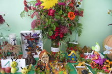 Сегодня в актовом зале необычайно красиво и сказочно. Здесь выставлены конкурсные работы учащихся: поделки из природных материалов, букеты, осенние композиции. Особенно постарались ребята из начальных классов. Молодцы!