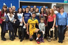 Поддержать своих любимых игроков приехали на волейбольный матч учащиеся школы.