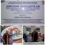 Диплом победителя получила семья Киселевых на Республиканском конкурсе выставки-ярмарки декоративно-прикладных изделий "Сувениры России" в номинации "Семейная династия мастеров".