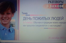 Сегодня прошли классные часы в рамках занятий «Разговоры о важном», посвященный предстоящему празднику Дню пожилого человека. Классные руководители говорили о традициях преемственности поколений, оказании помощи пожилым людям, уделению должного вниманию к членам своей семьи преклонного возраста,