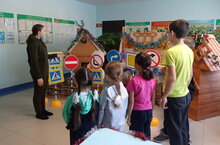 Бүген укучылар белән юл йөрү кагыйдәләрен кабатладык.Кыш көне юлларда чана-чаңгыларда йөрергә ярамаганлыгы әйтелде.