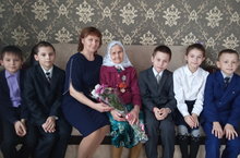 2-4 нче сыйныф укучылары хезмәт һәм тыл ветераны Хәсәнова Фәрдәнә Абдулла кызы янында булдылар. Җиңүнең 75 еллыгы уңаеннан тапшырылган юбилей медале белән котладылар. Үз чиратында әби укучыларга изге теләкләр теләде, тыныч тормышның кадерен белегез, яхшы укыгыз, тәртипле булыгыз диде.