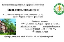 Приглашение на День открытых дверей в ФГБОУ ВО «Казанский государственный аграрный университет» 14 марта 2020 года в 11:00 10.03.2020