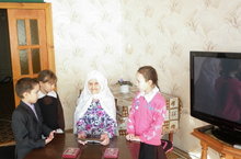 Башлангыч сыйныф укучылары тыл һәм хезмәт ветераны Хәсәнова Фәрдәнә әбинең өендә булдылар. Алар иң беренче өй эшләрендә булыштылар, соңыннан Фәрдәнә әби балаларга сугыш чорында күргәннәрен сөйләде.