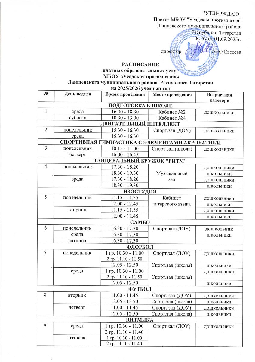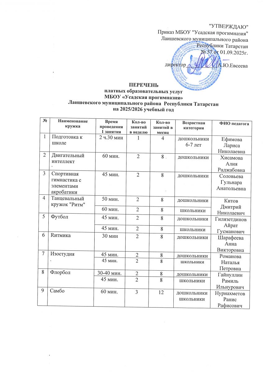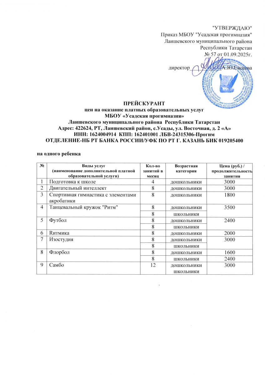 Положение об оказании платных дополнительных образовательных услуг в МБОУ "Усадская прогимназия" Лаишевского муниципального района РТ