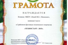 Команда МБОУ "Лицей №2" заняли 1 место в районном фестивале технического творчества "Техностарт -2015"