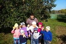 Тәрбияче апалар белән бергә алма уңышын җыябыз.