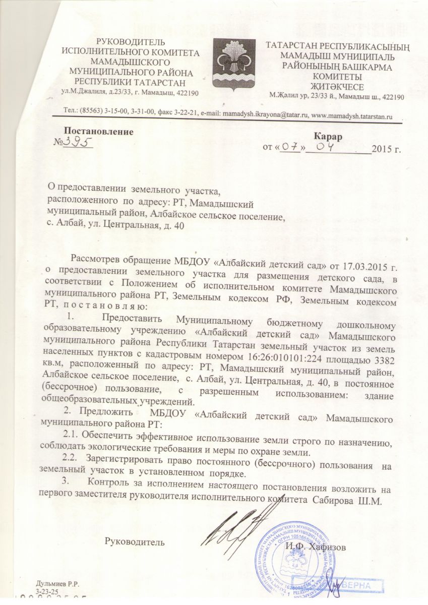 Адрес: 422176, Республика Татарстан, Мамадышский район, с. Албай, ул. Центральная, д. 40
