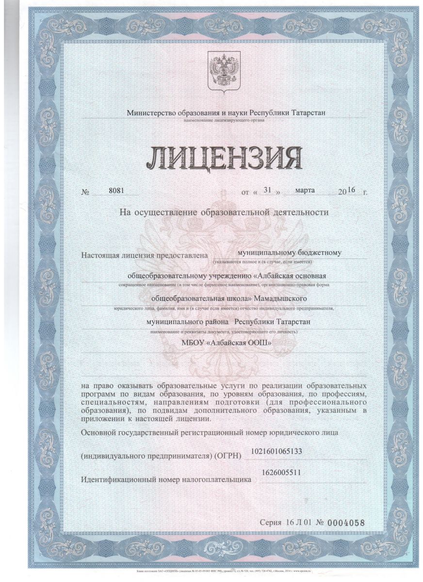 Адрес: 422176, Республика Татарстан, Мамадышский район, с. Албай, ул. Центральная, дом № 36