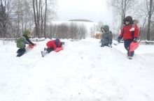 Мәктәп-бакчабыз янында ясалма тау бар. Әнә шунда рәхәтләнеп чана шуабыз: