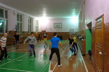 Работа школьного спортзала в вечернее время. Молодёжь играет в баскетболл 24.10.2015