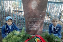 Возложение гирлянды на могилу Героя Советского Союза Москвина М.К. 08.05.2019