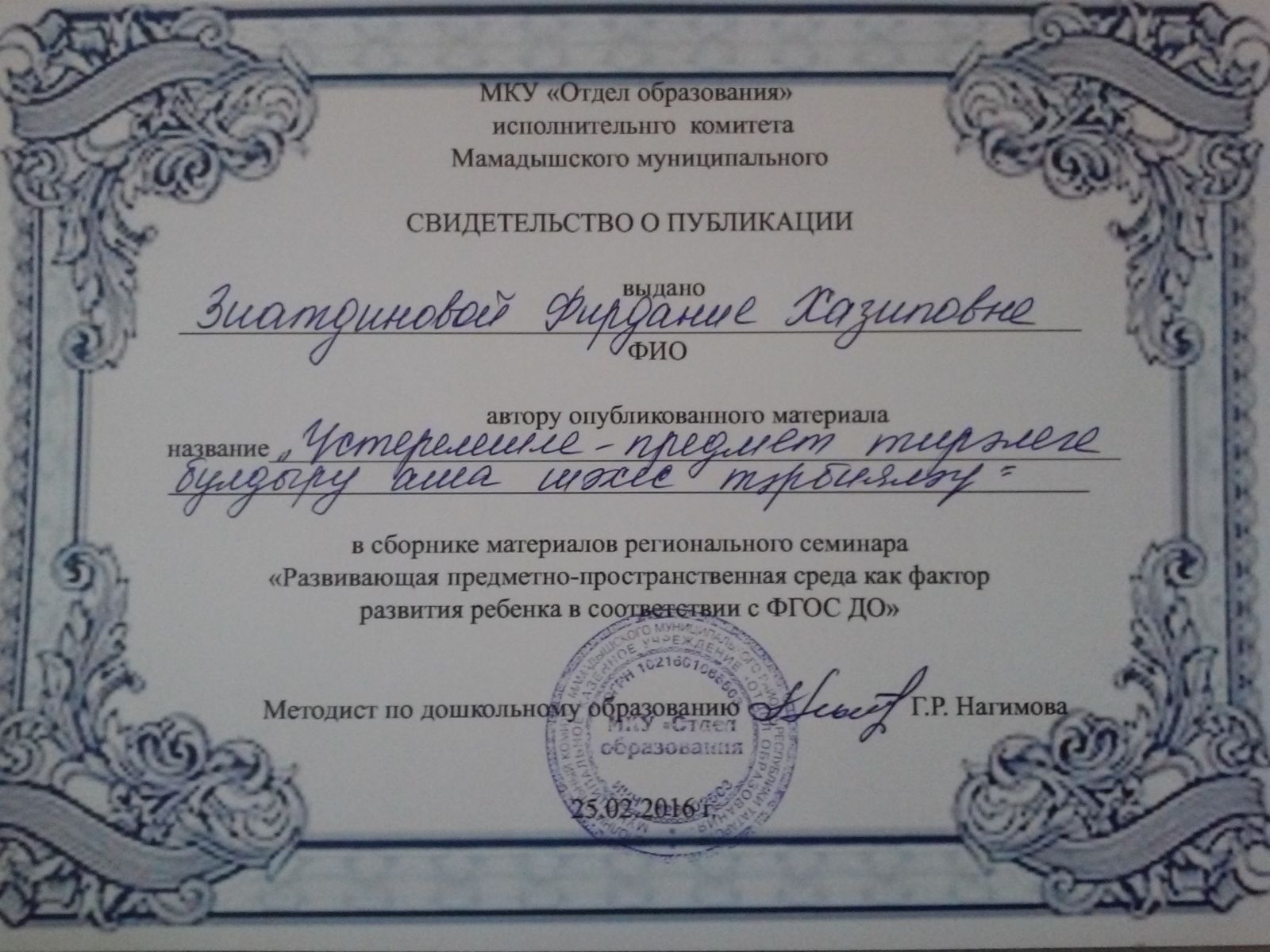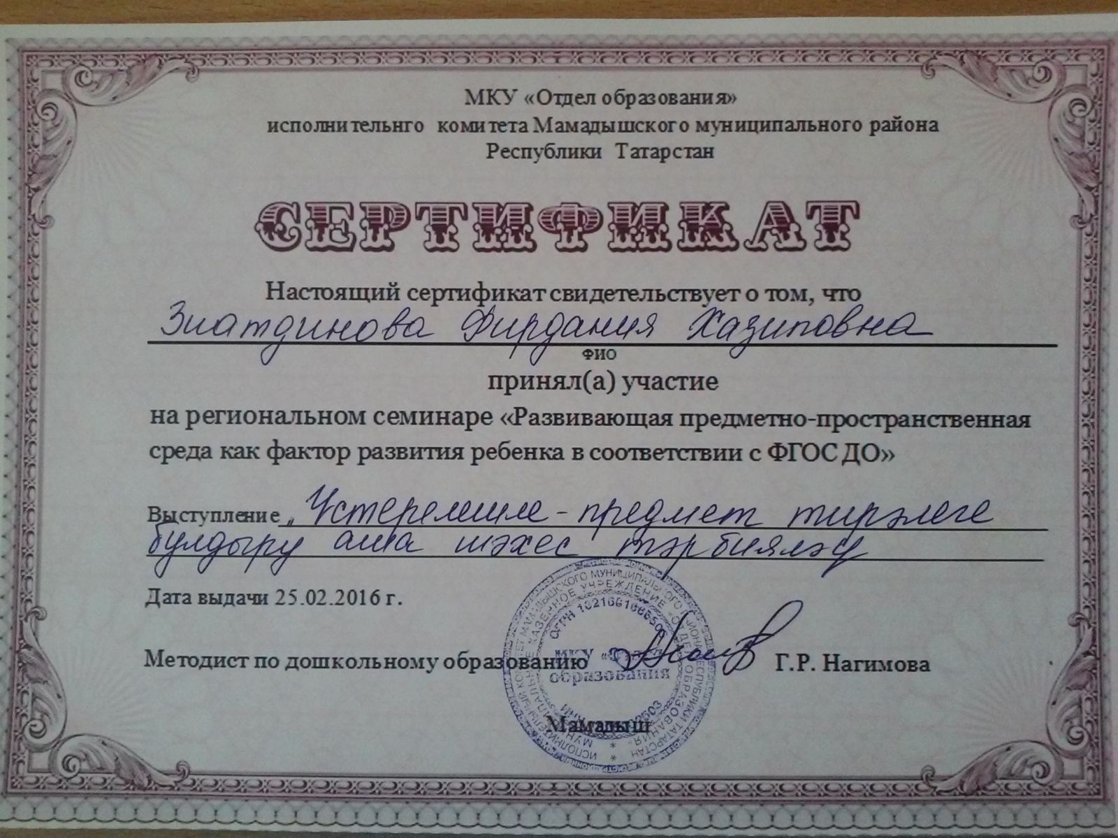 | Руководитель: | Хисамова Алсу Маратовна |