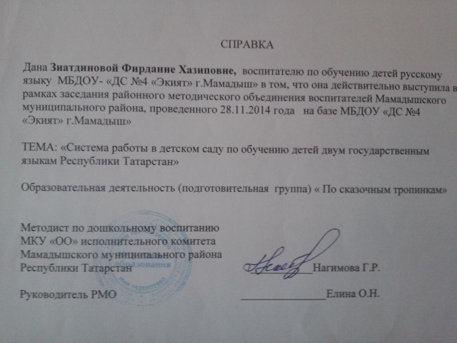| Короткое название: | МБДОУ "ДС № 4 "Экият" г. Мамадыш" |