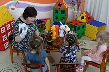 Дети раннего возраста с воспитателем Бакиевой Л.С. отправились в гости к зайке. В игровой форме воспитатель способствовала развитию основных физических качеств у детей, воспитывала доброжелательное отношение друг к другу.