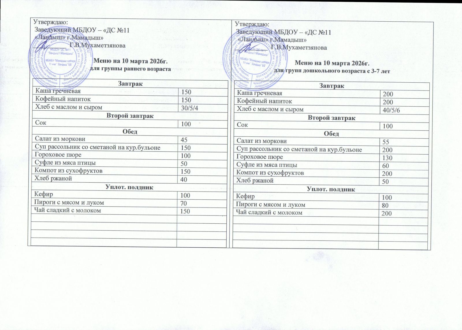 Примерное десятидневное меню для организации питания детей с 3 до 7 лет