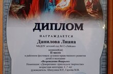 2 место в районном фестивале духовно- нравственного развития детей и молодежи "Возрождение- Янарыш" в номинации : Декоративно - прикладное творчество " заняла воспитанница старшей группы Данилова Лиана . 09.01.2024