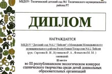 Диплом 2 место в III республиканском экологическом конкурсе сценического творчества среди детей дошкольных образовательных организаций "Через искусство - к зеленой планете"/Мәктәпкә баручы балалар төркеме "Җәйнең бер көнендә" дигән театраль постановка белән республикакуләм конкурсында 2 нче урынга лаек булдылар. Уңышлар сезгә балалар! 26.01.2024