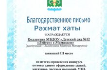 Подведены итоги конкурса по новогоднему оформлению. Наш детский сад занял 3 место 16.01.2023