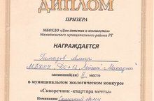 Наши воспитанники приняли активное участие в муниципальном экологическом конкурсе "Скворечник - квартира мечты" в номинации "Сказочный дворец" Гимазов Амир занял 2 место 19.05.2021
