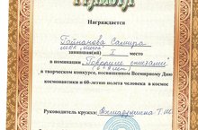 Первое место Гайнанова Самира в творческом конкурсе посвященном Всемирному Дню космонавтики и 60-летию полета человека в космос 15.04.2021
