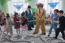 После, учащиеся подарили воспитанникам сада памятные значки с изображением Барсика. А ребята подготовительной к школе группы показали задорный танец "Неразлучные друзья". -