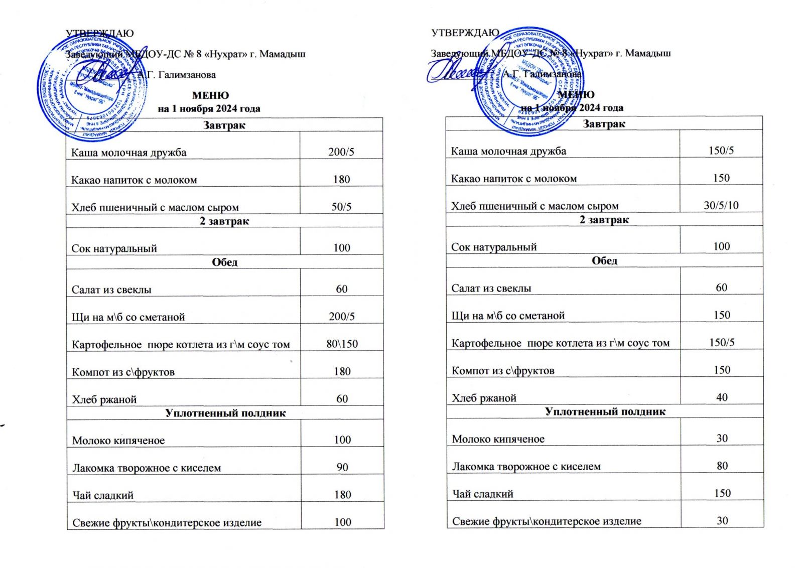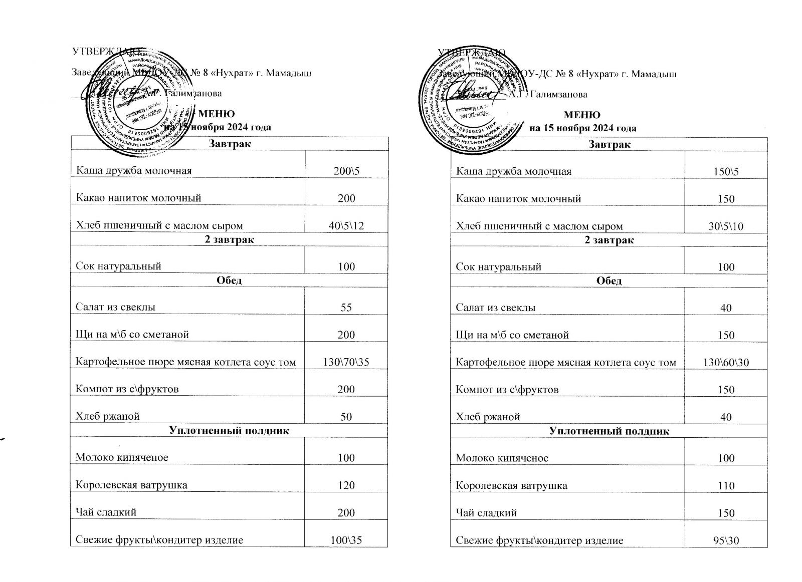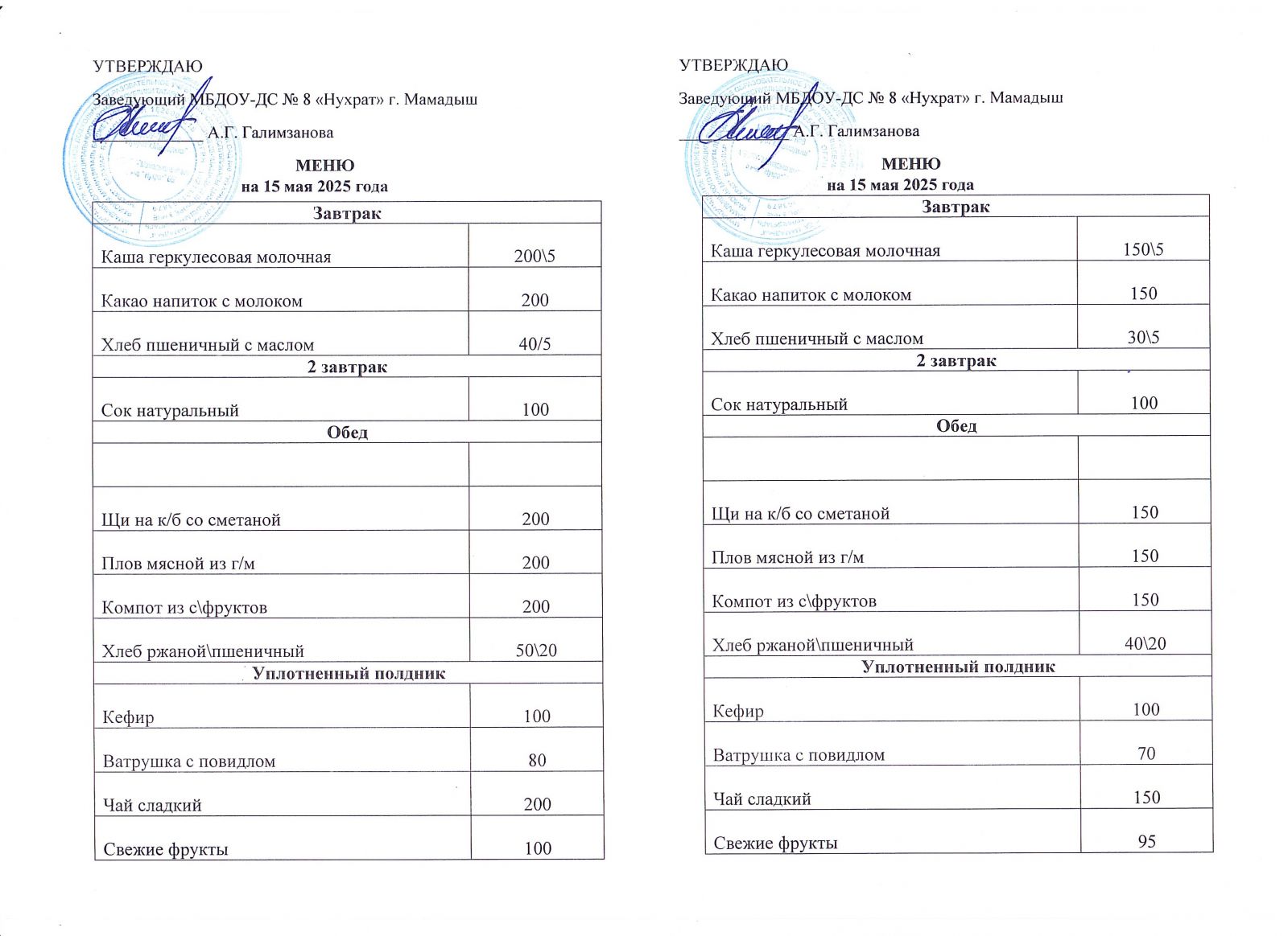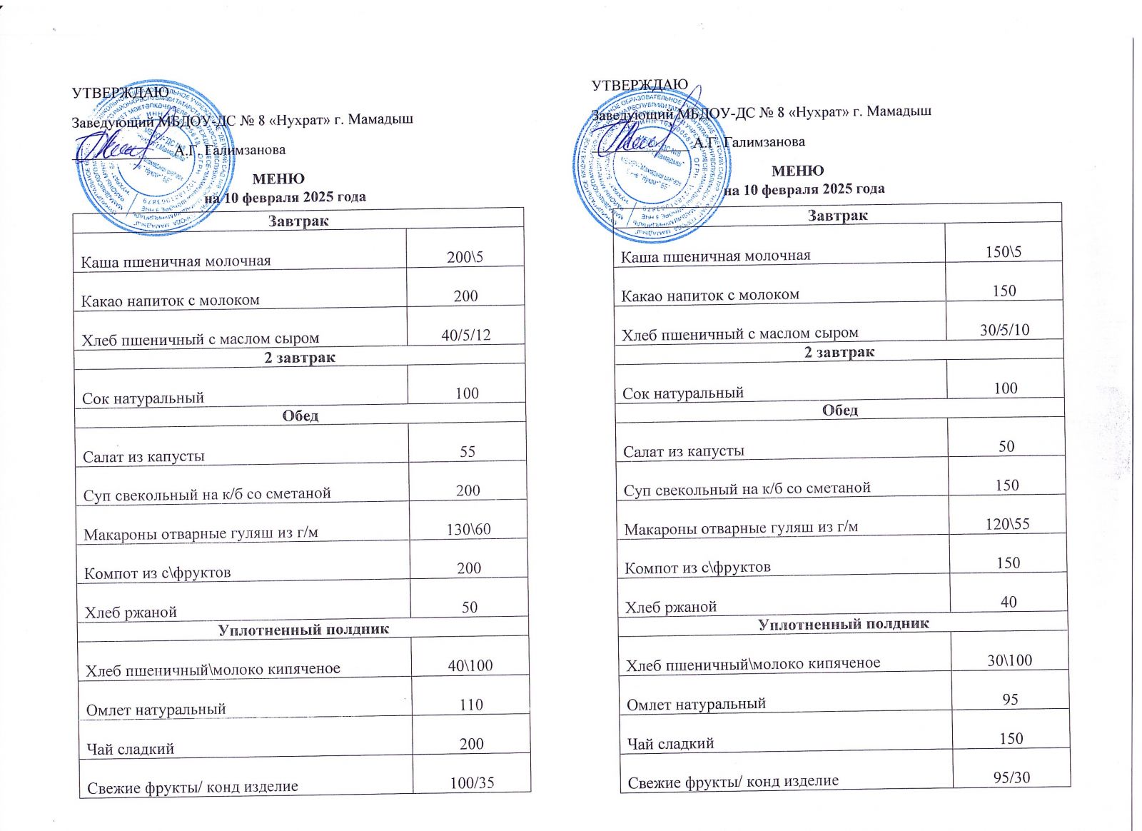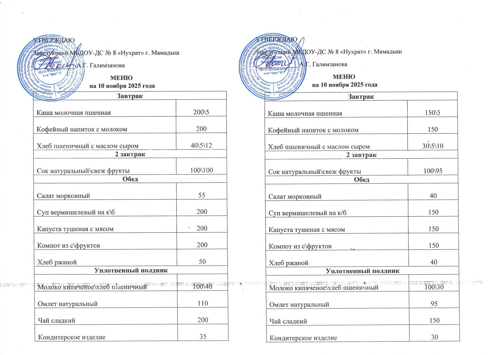 Примерное десятидневное меню для организации питания детей с 1,5 до 3 лет