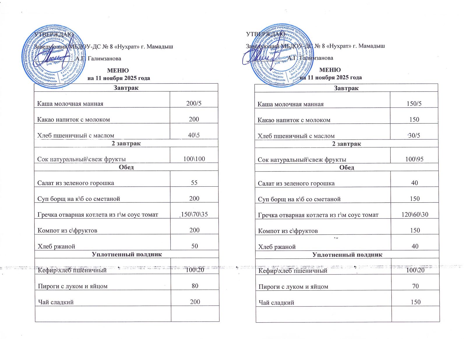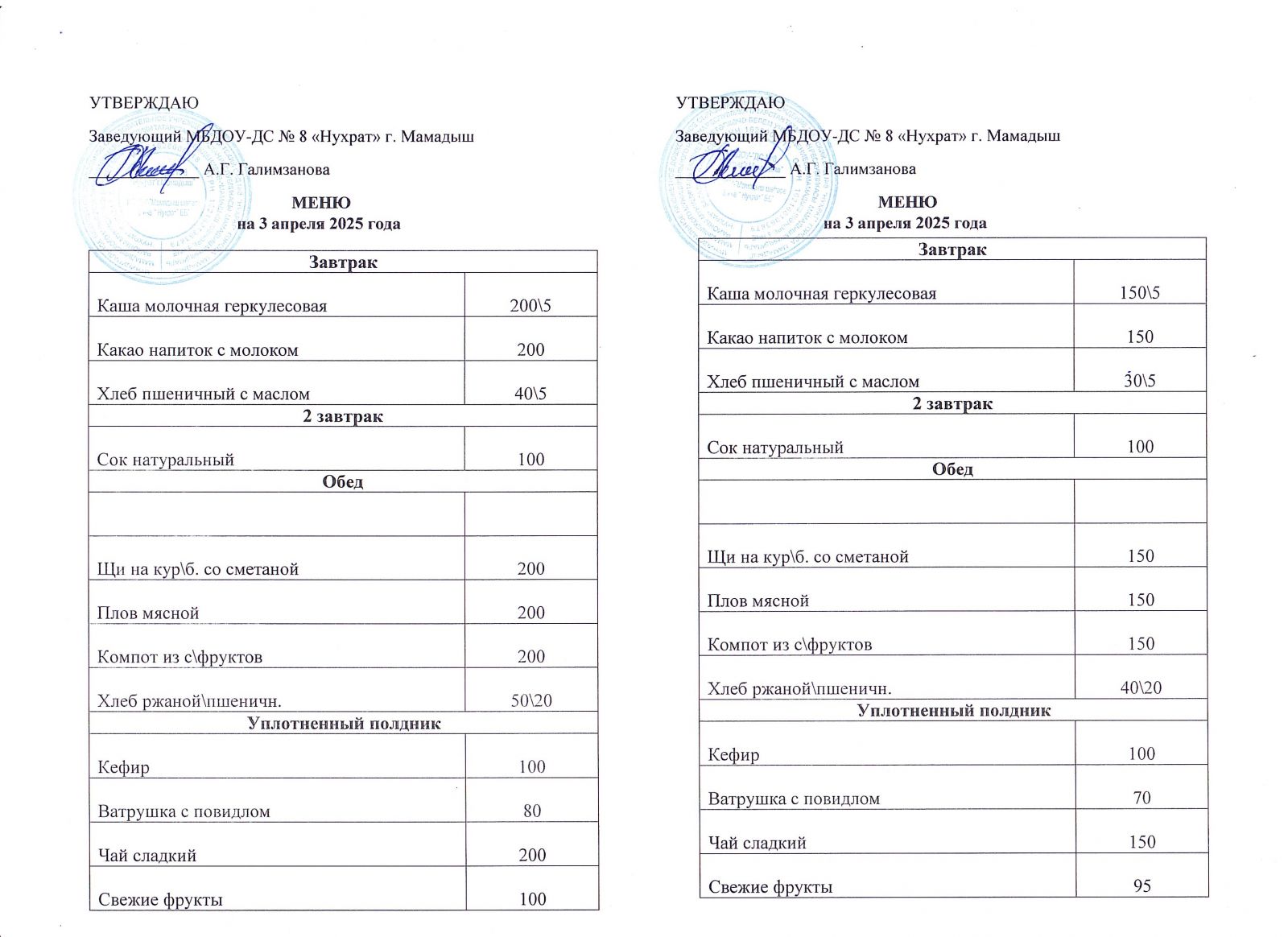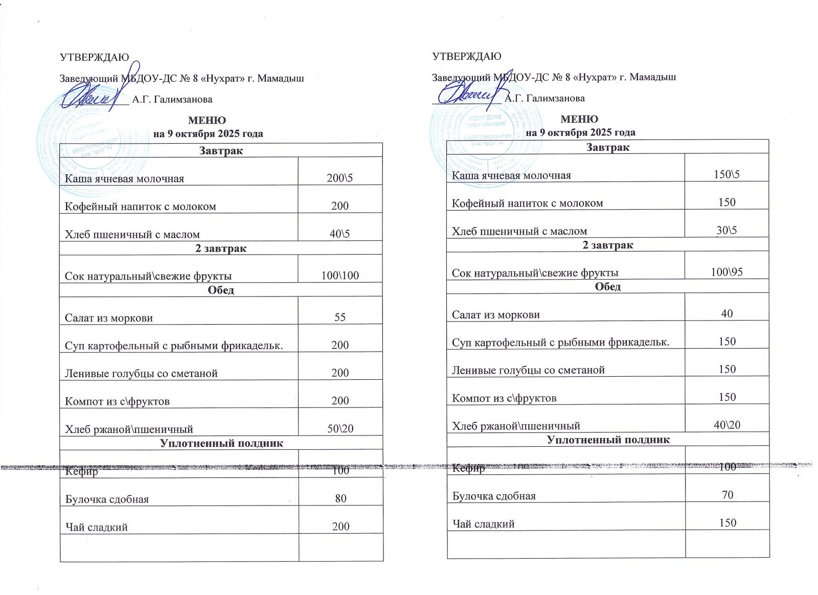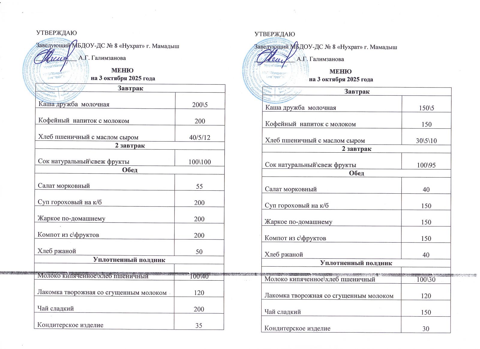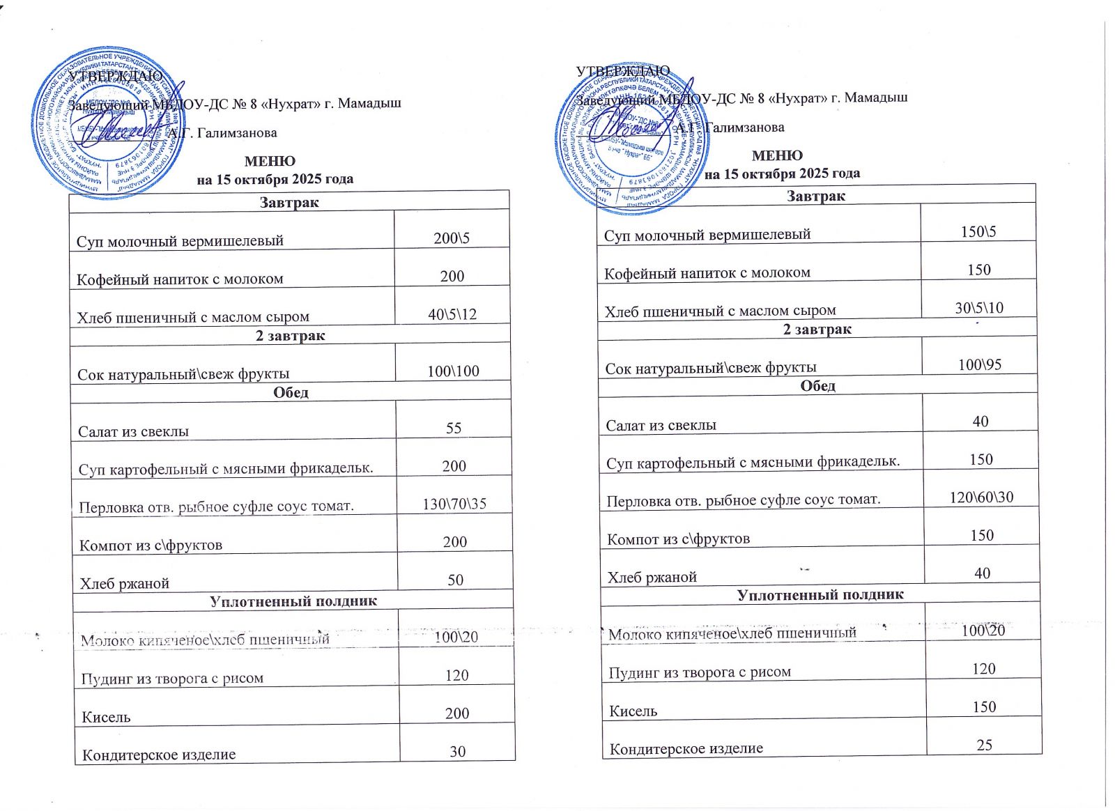 Примерное десятидневное меню для организации питания детей с 1,5 до 3 лет