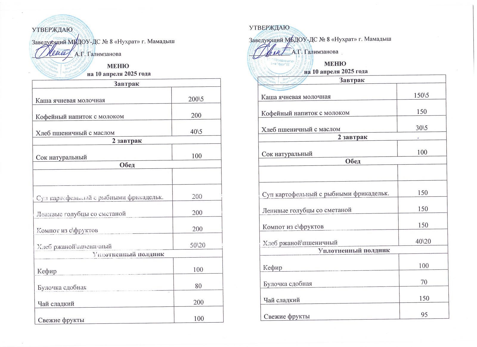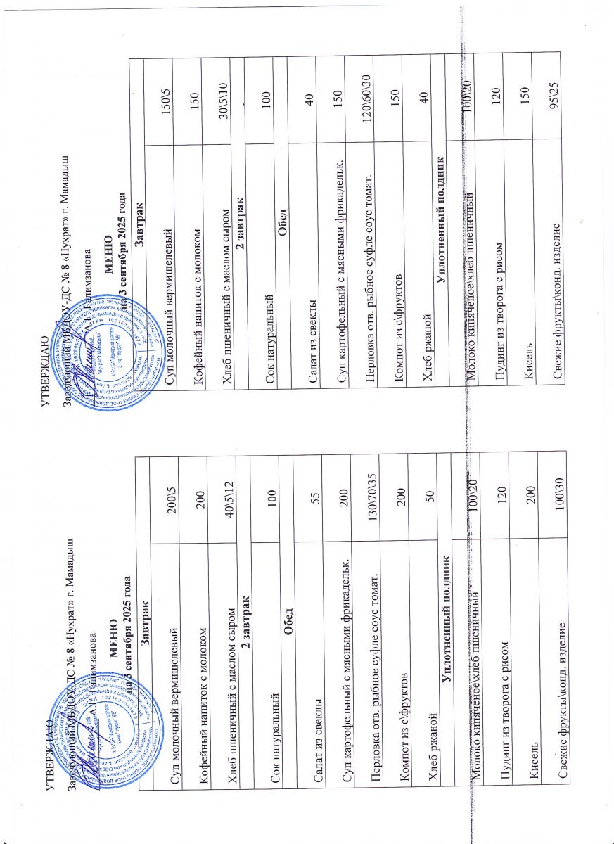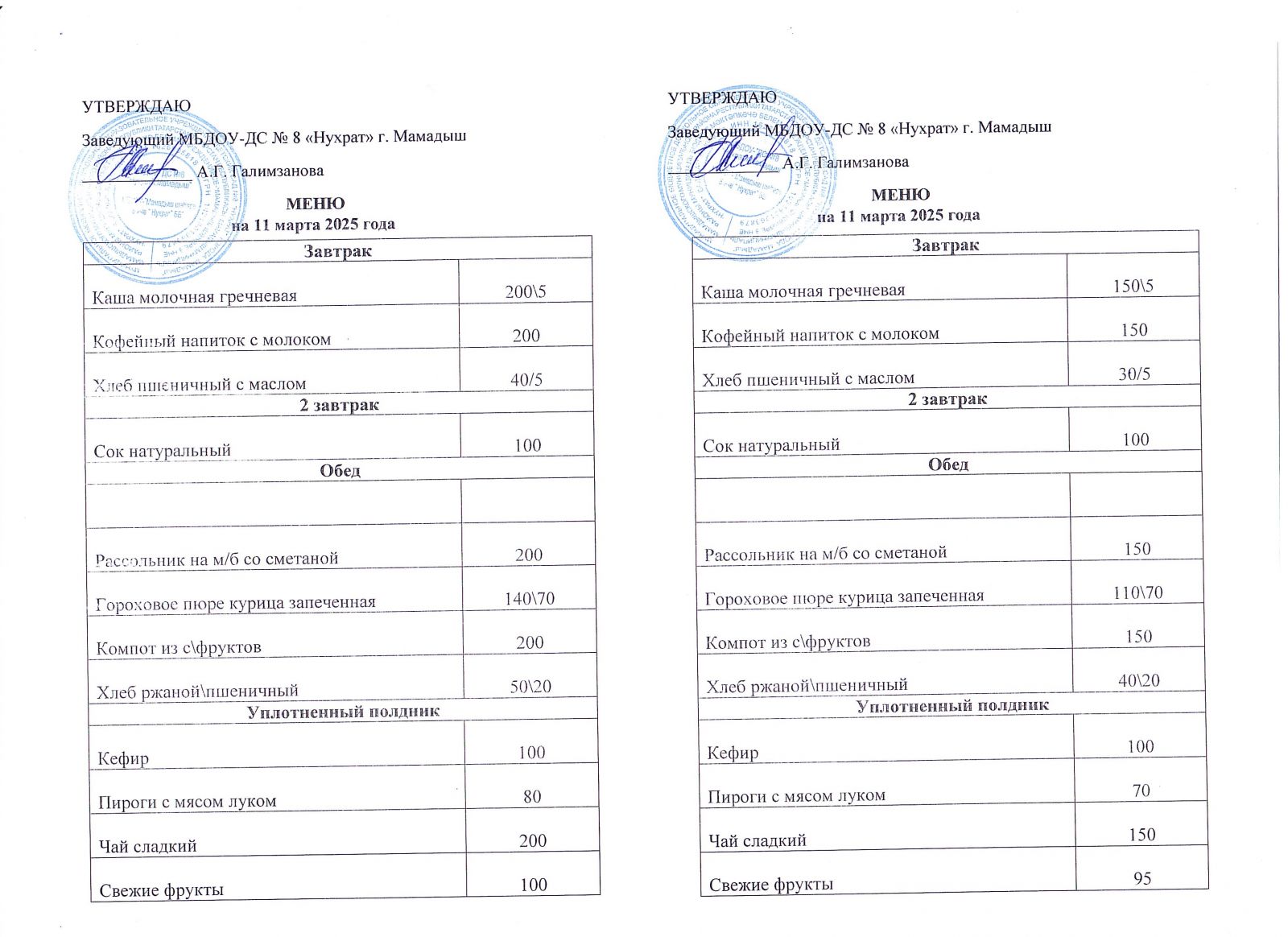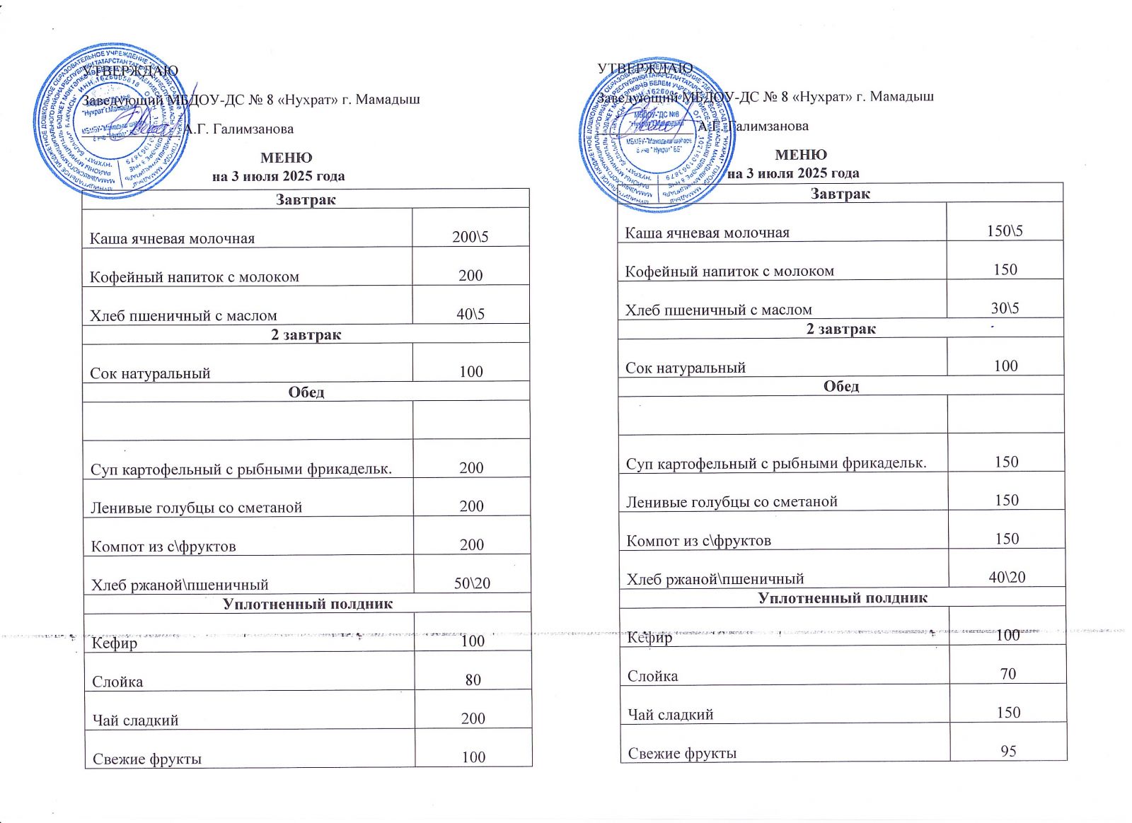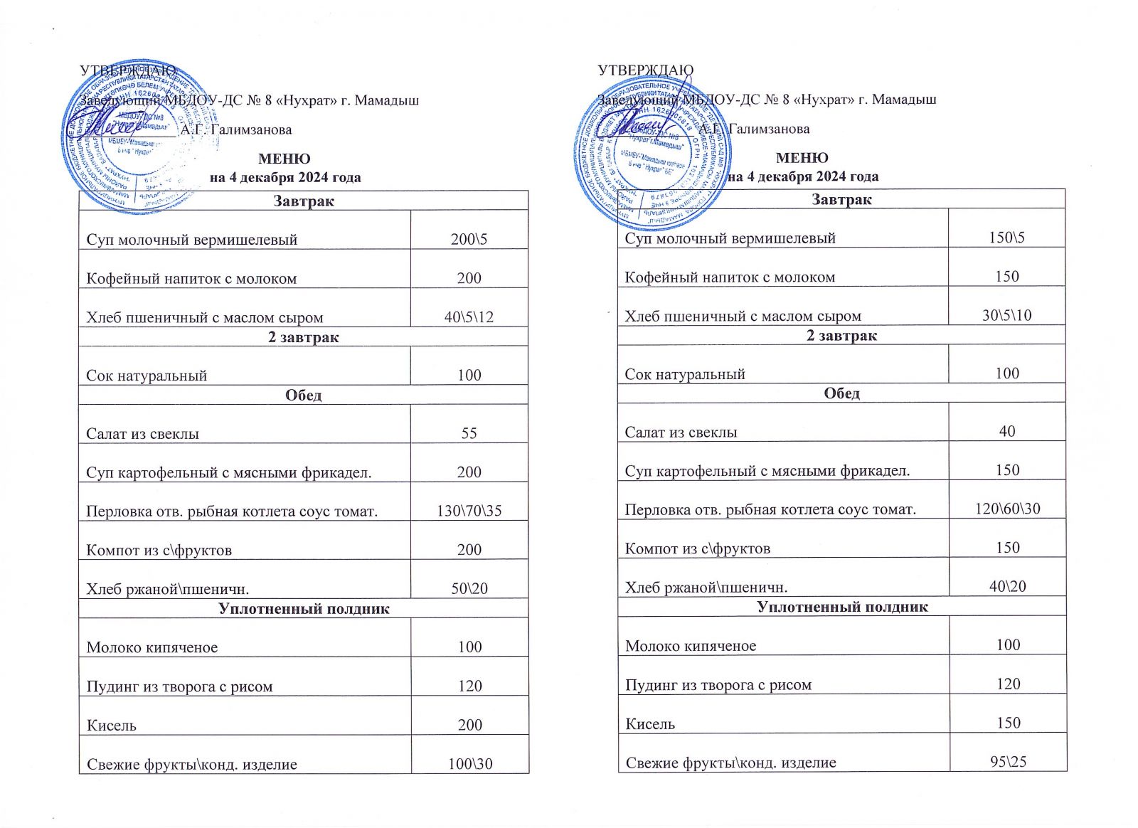 Примерное десятидневное меню для организации питания детей с 1,5 до 3 лет