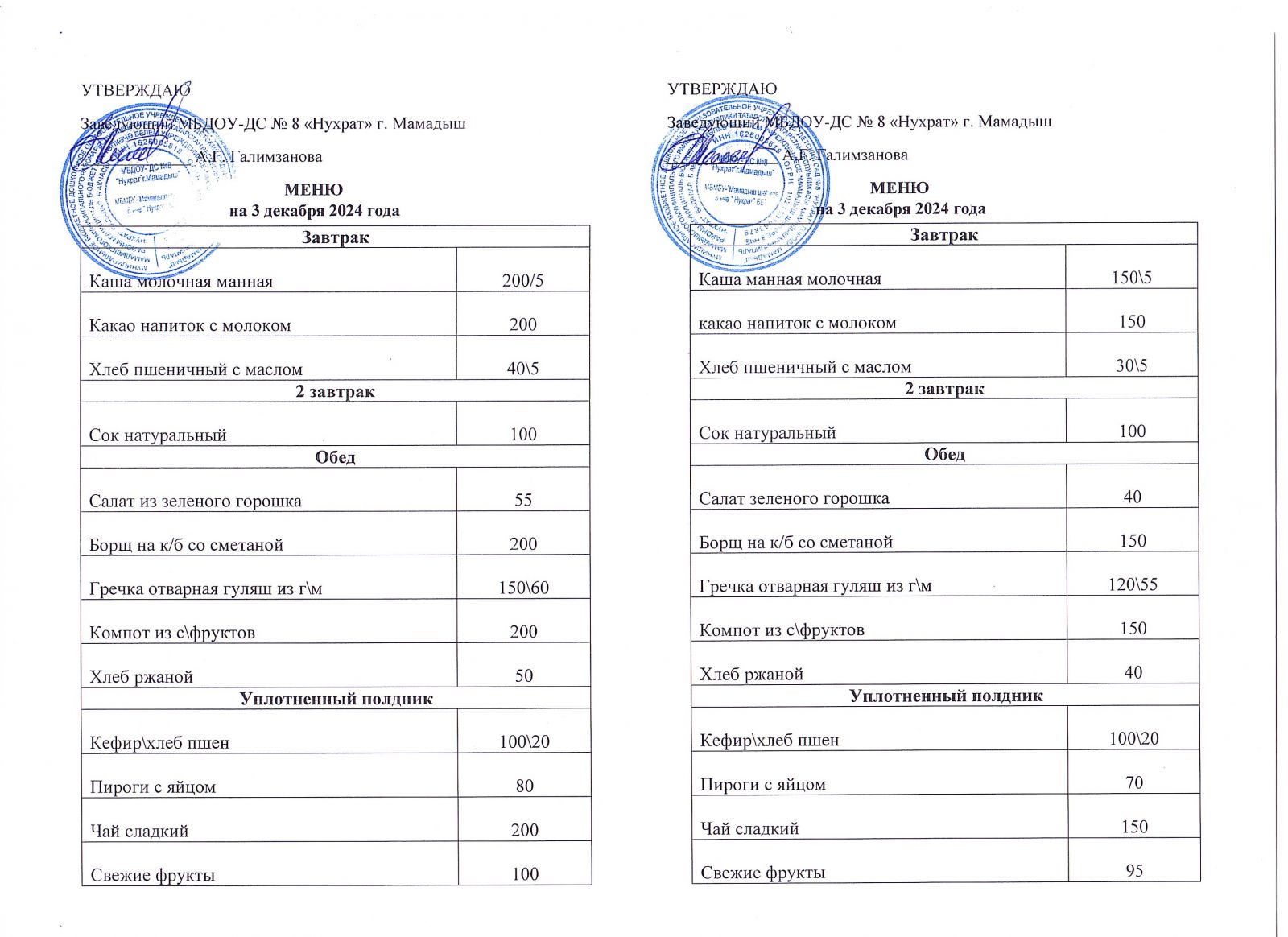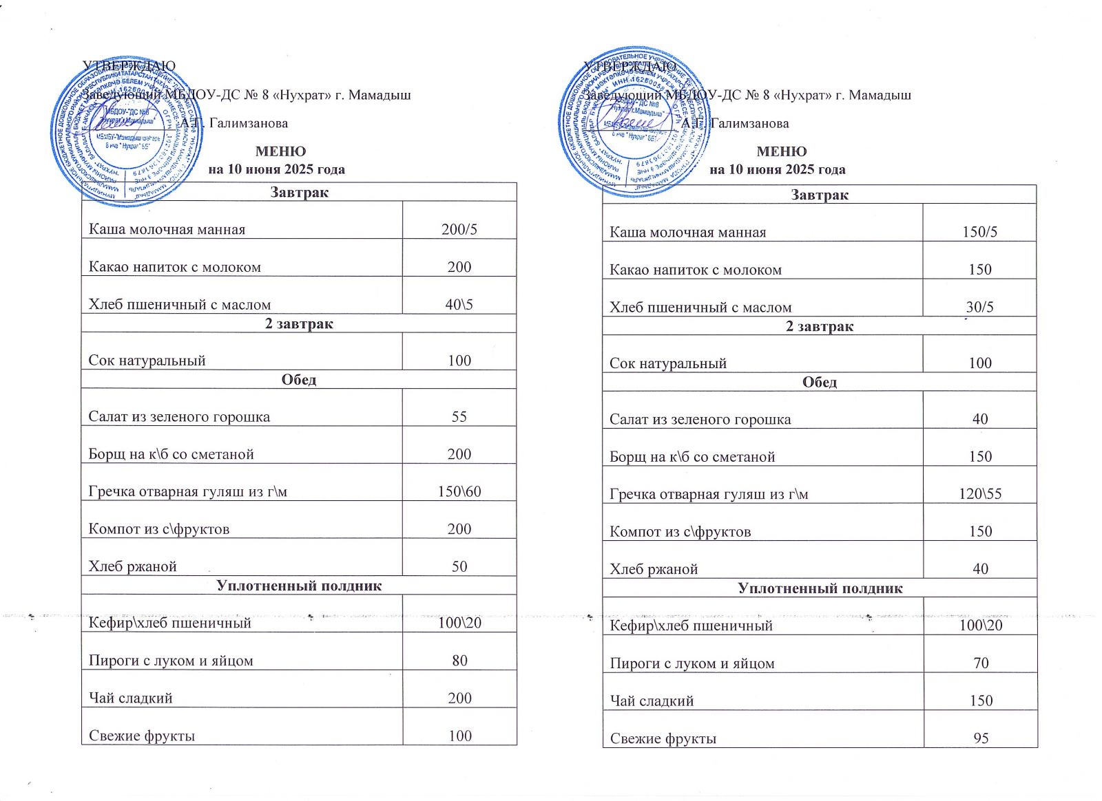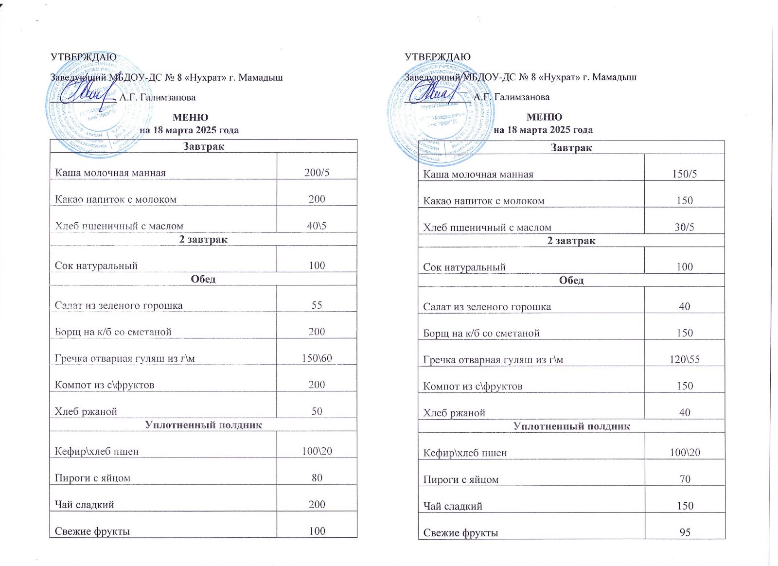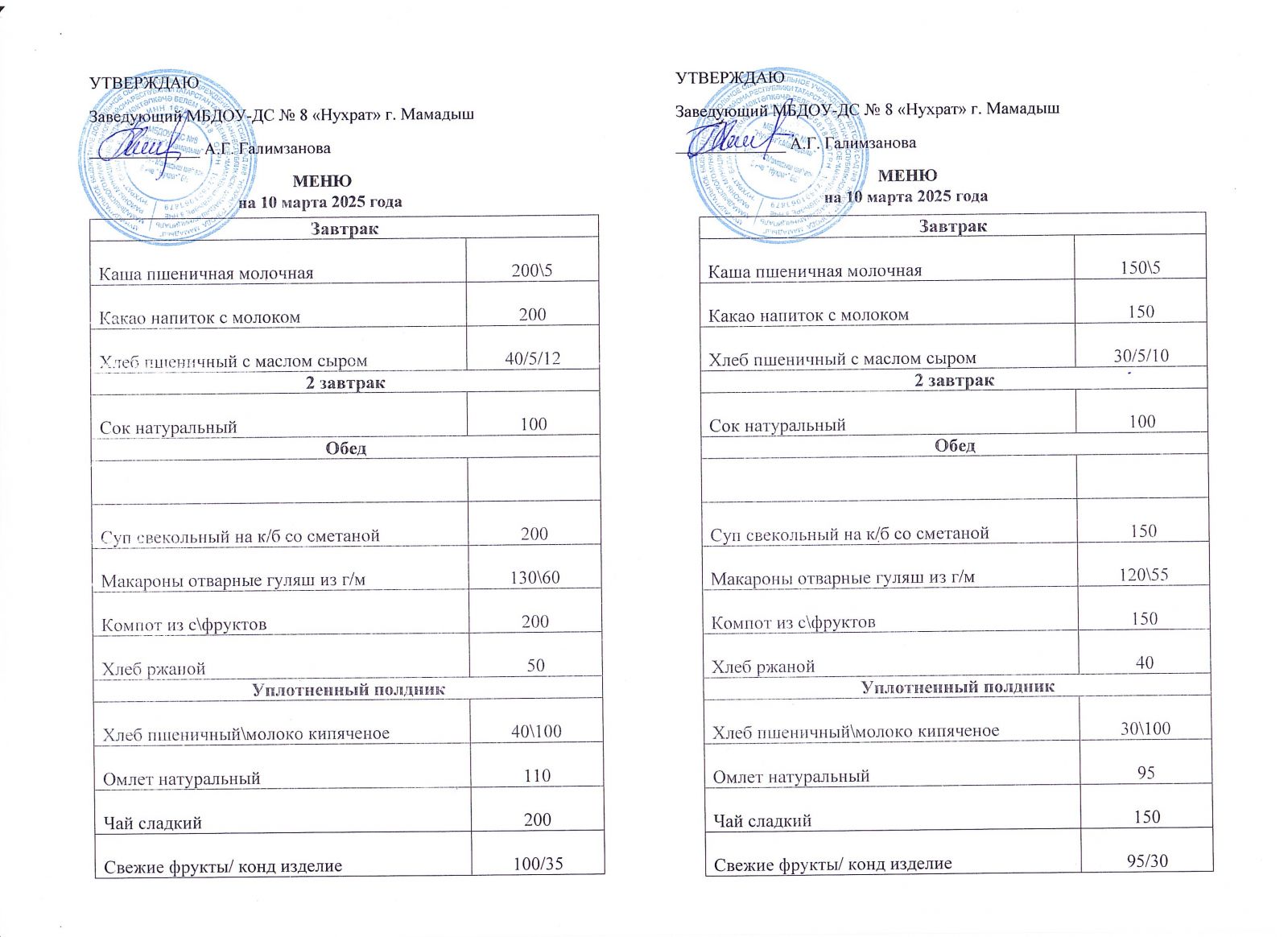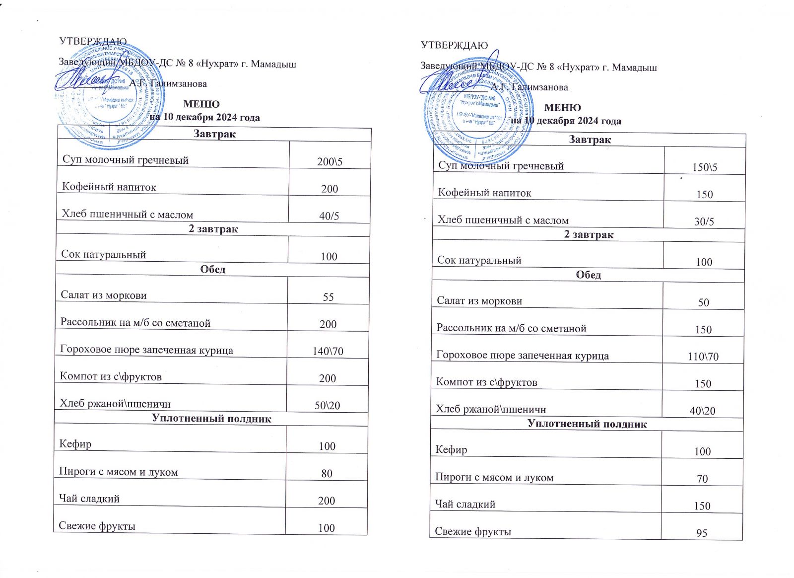 Примерное десятидневное меню для организации питания детей с 1,5 до 3 лет