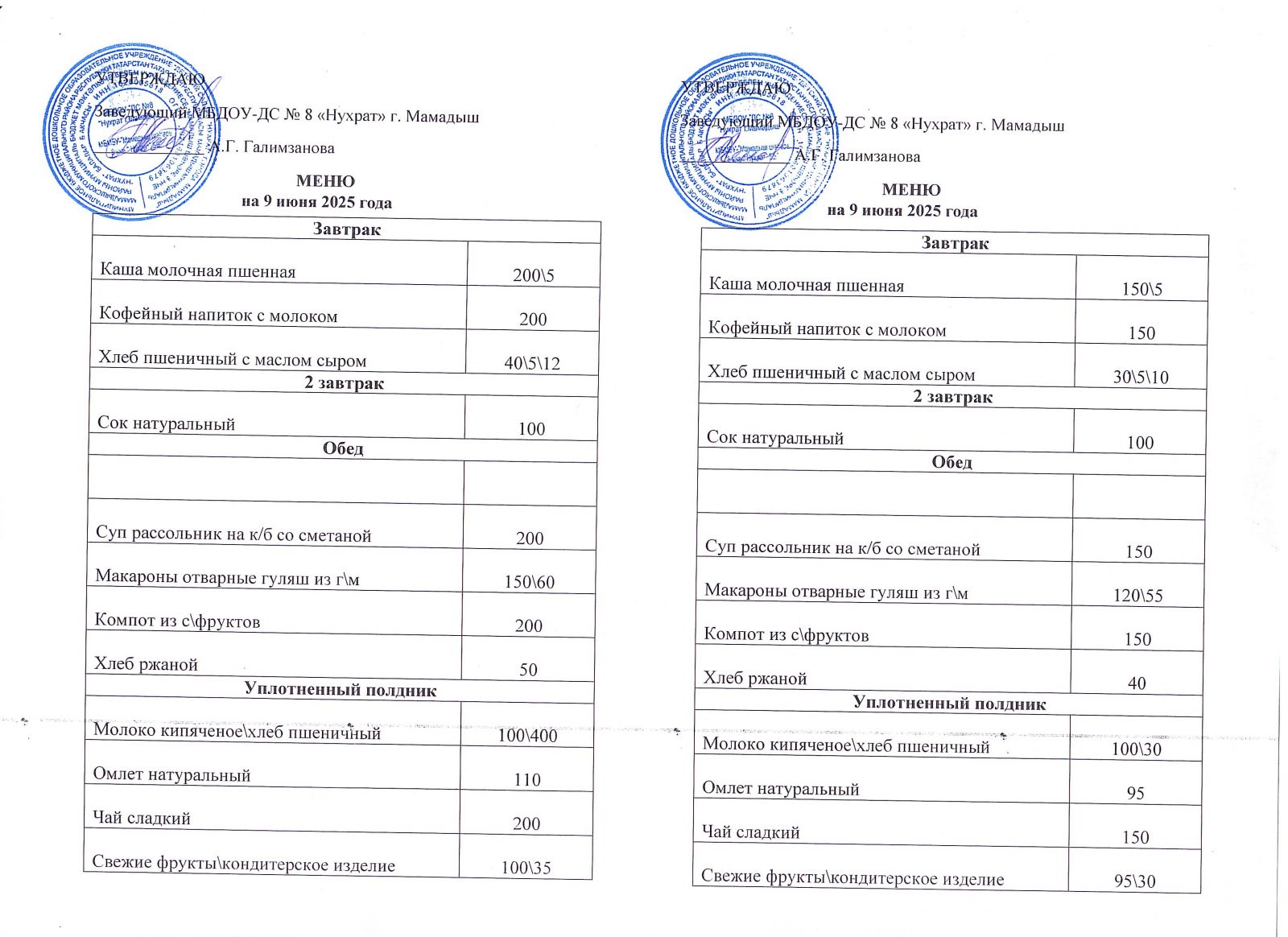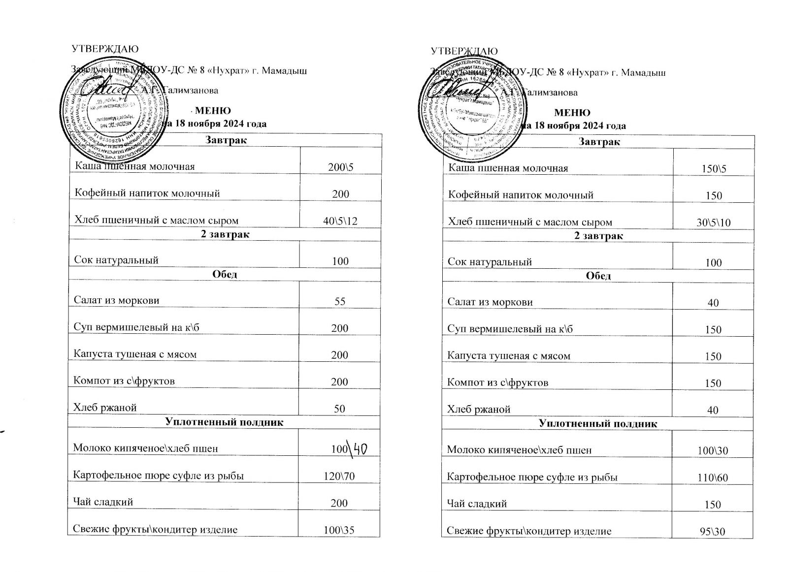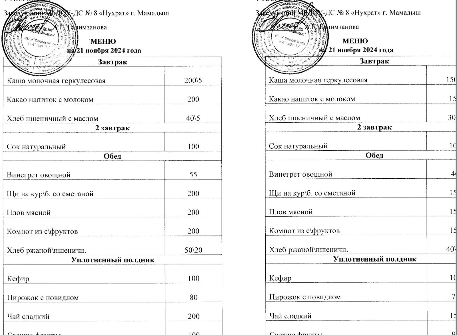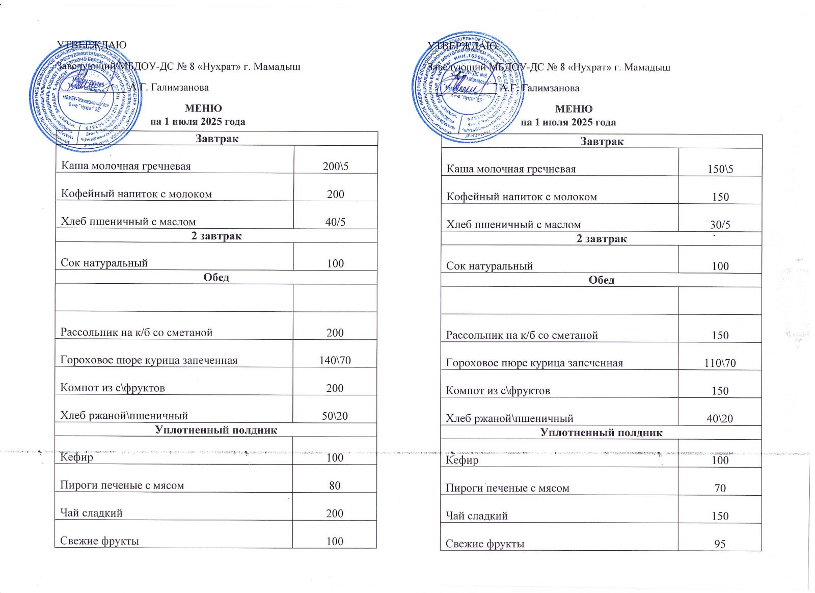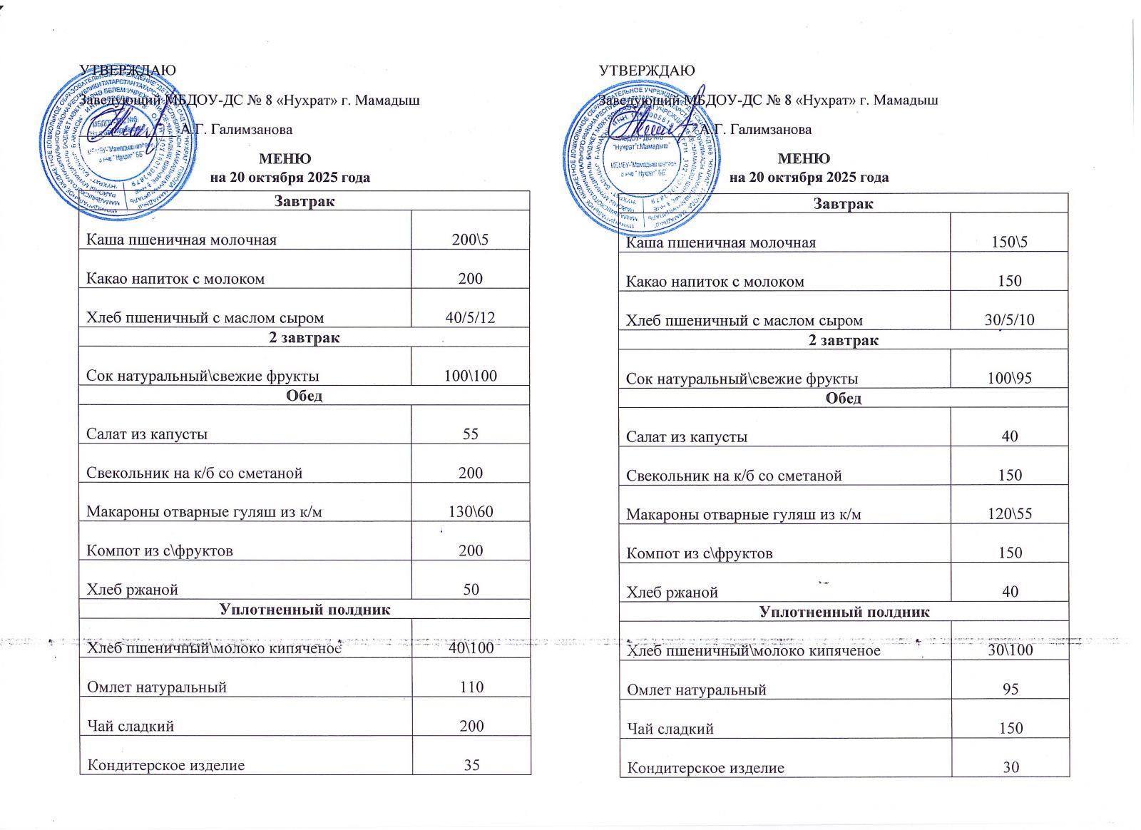Примерное десятидневное меню для организации питания детей с 1,5 до 3 лет