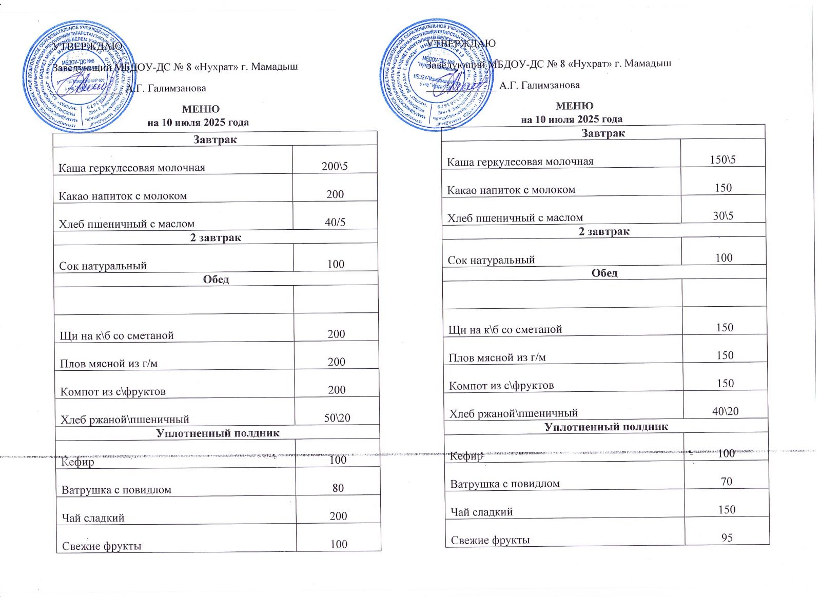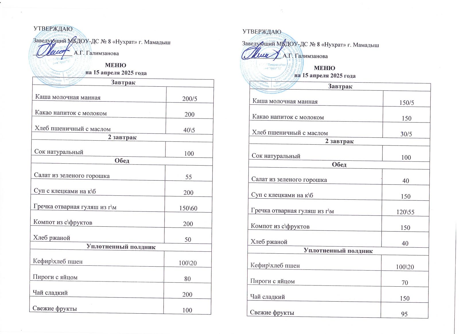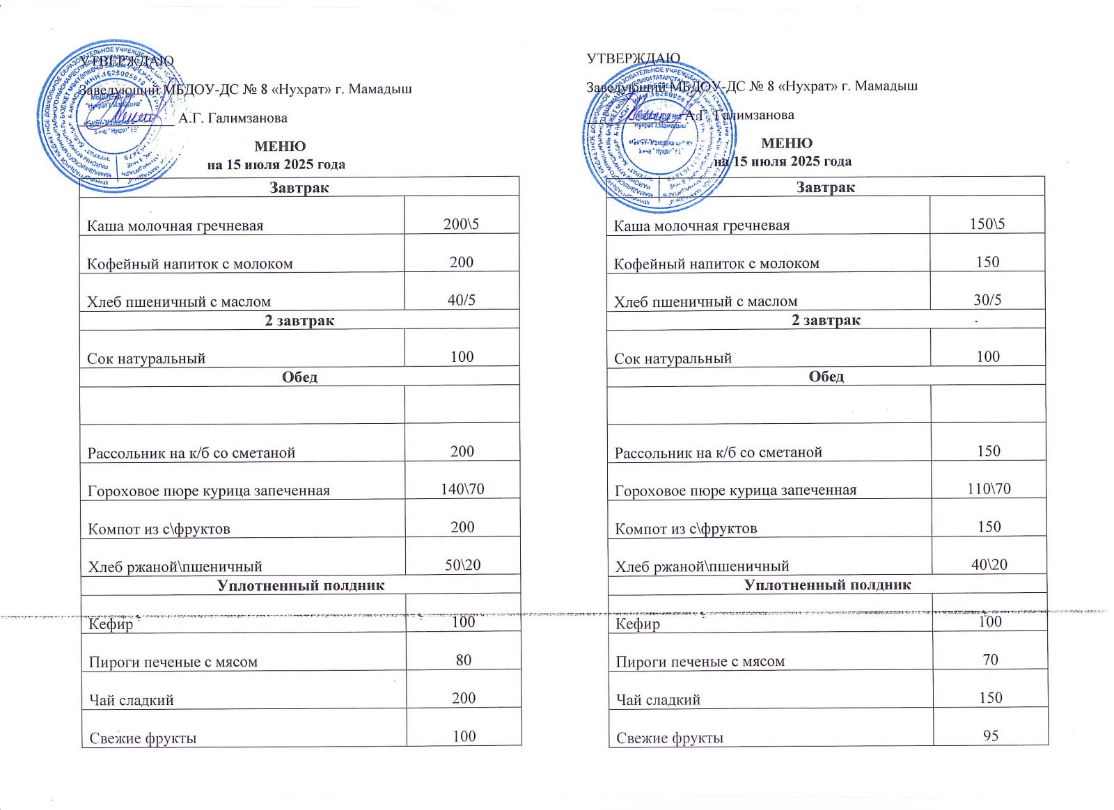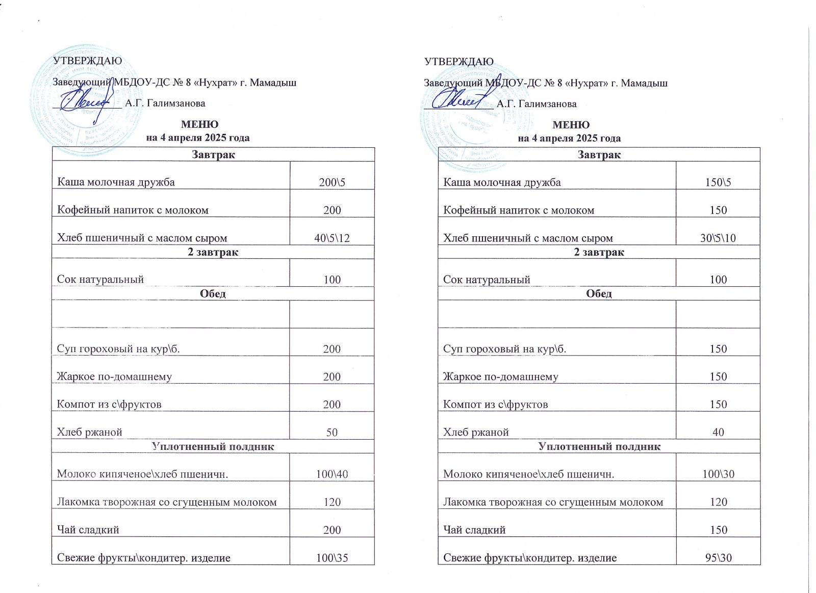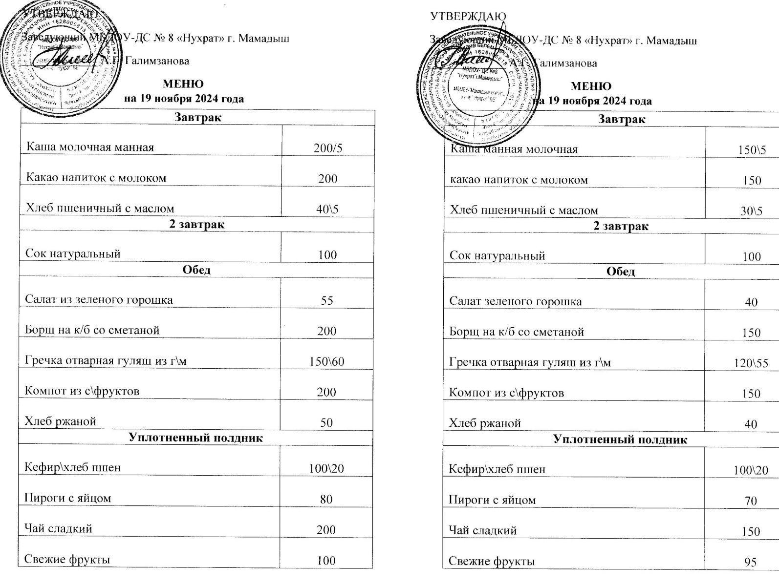 Примерное десятидневное меню для организации питания детей с 1,5 до 3 лет