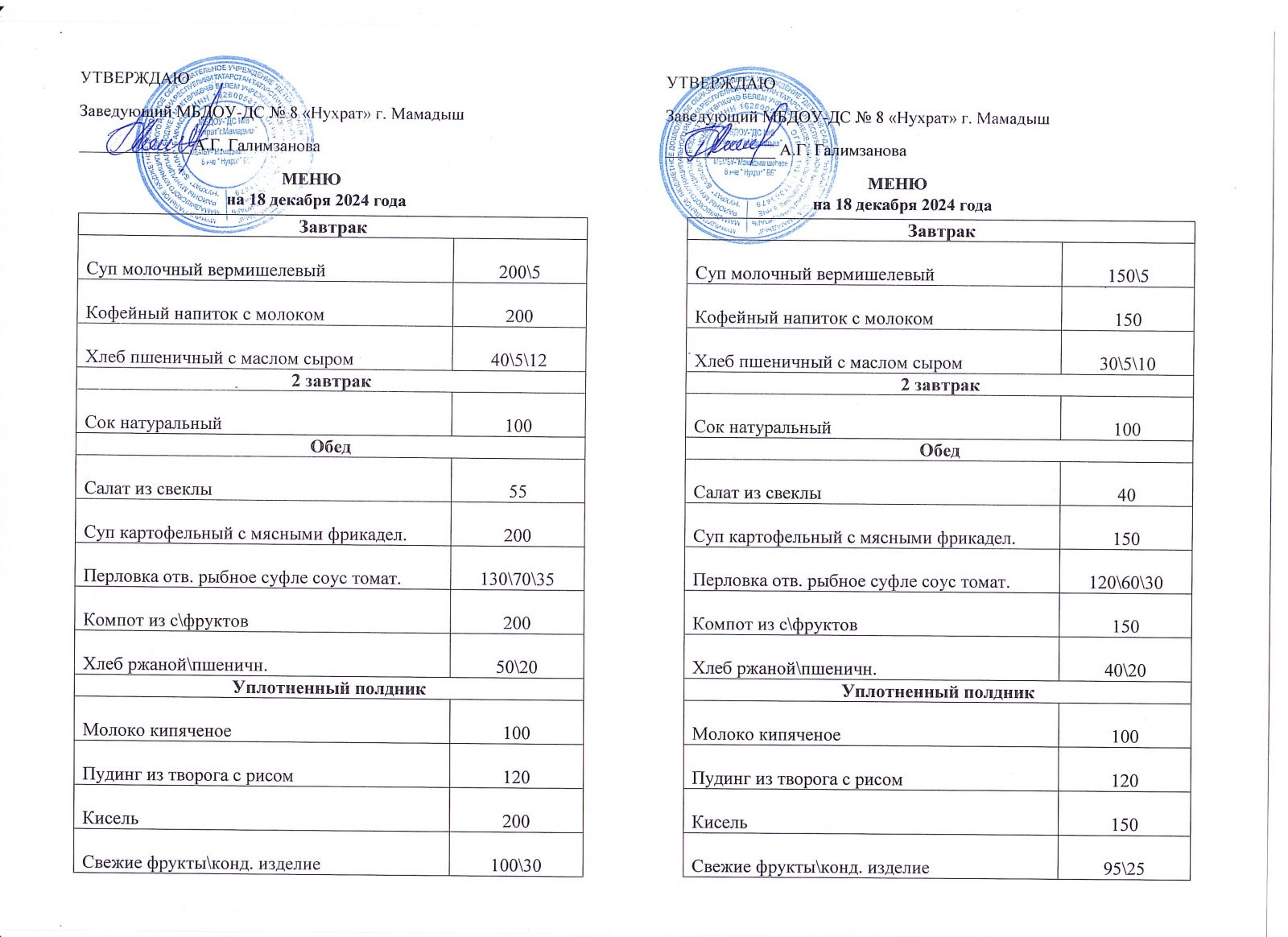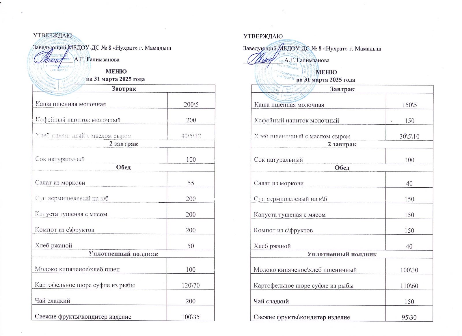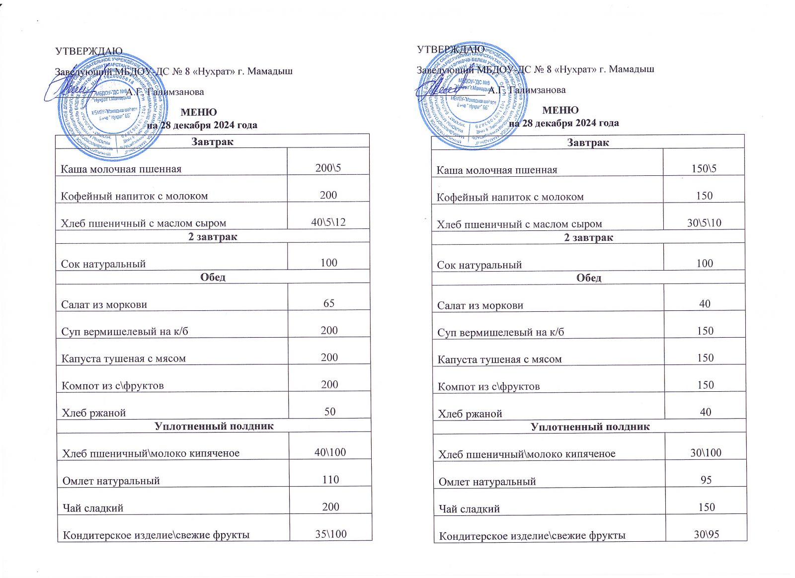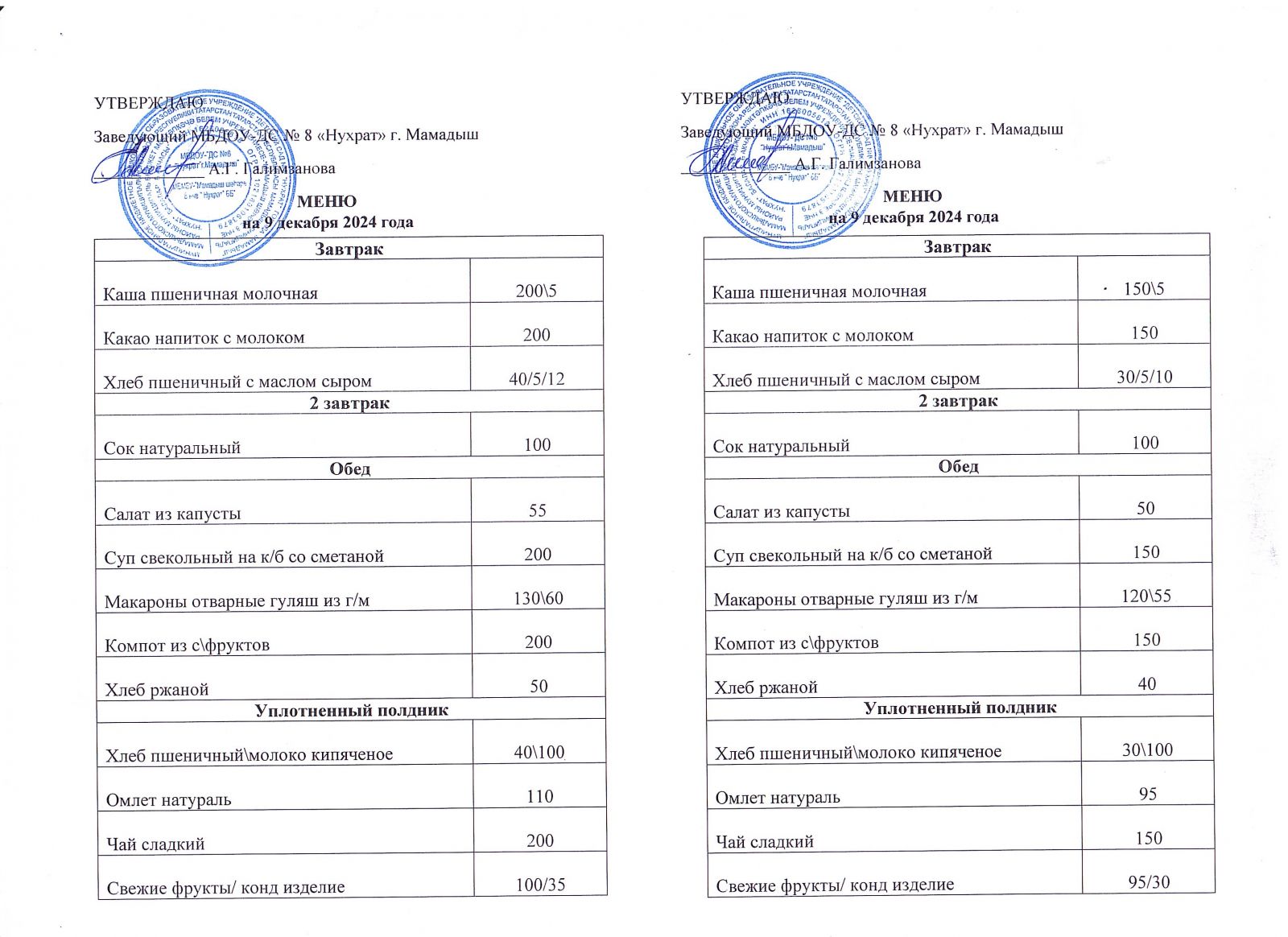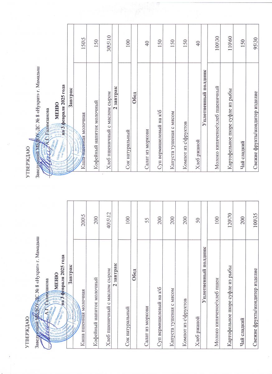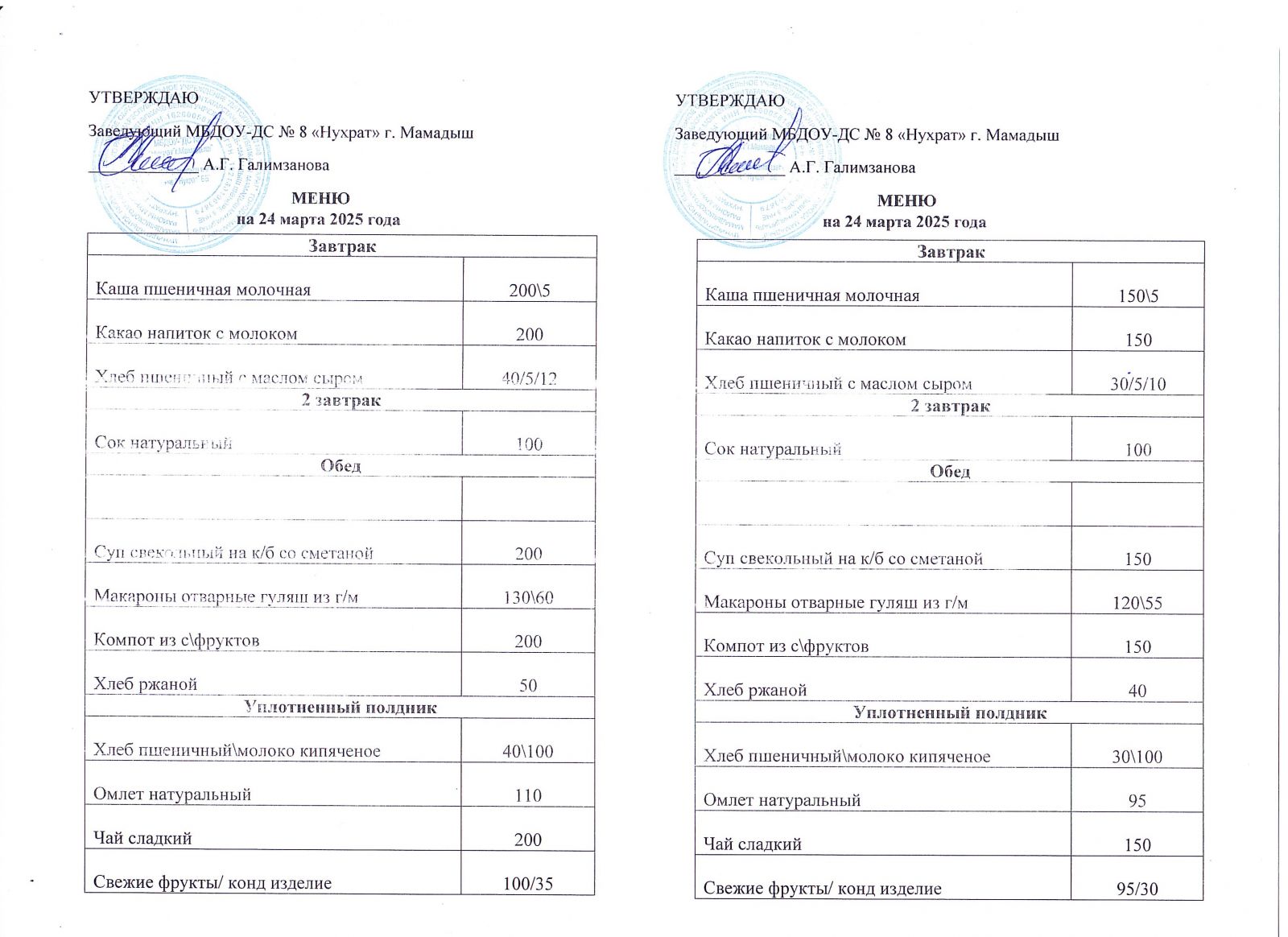 Примерное десятидневное меню для организации питания детей с 1,5 до 3 лет