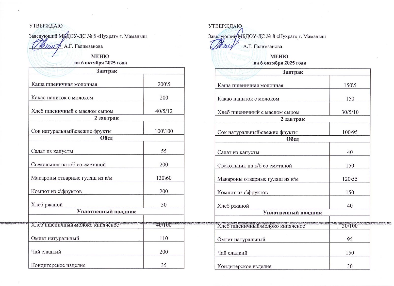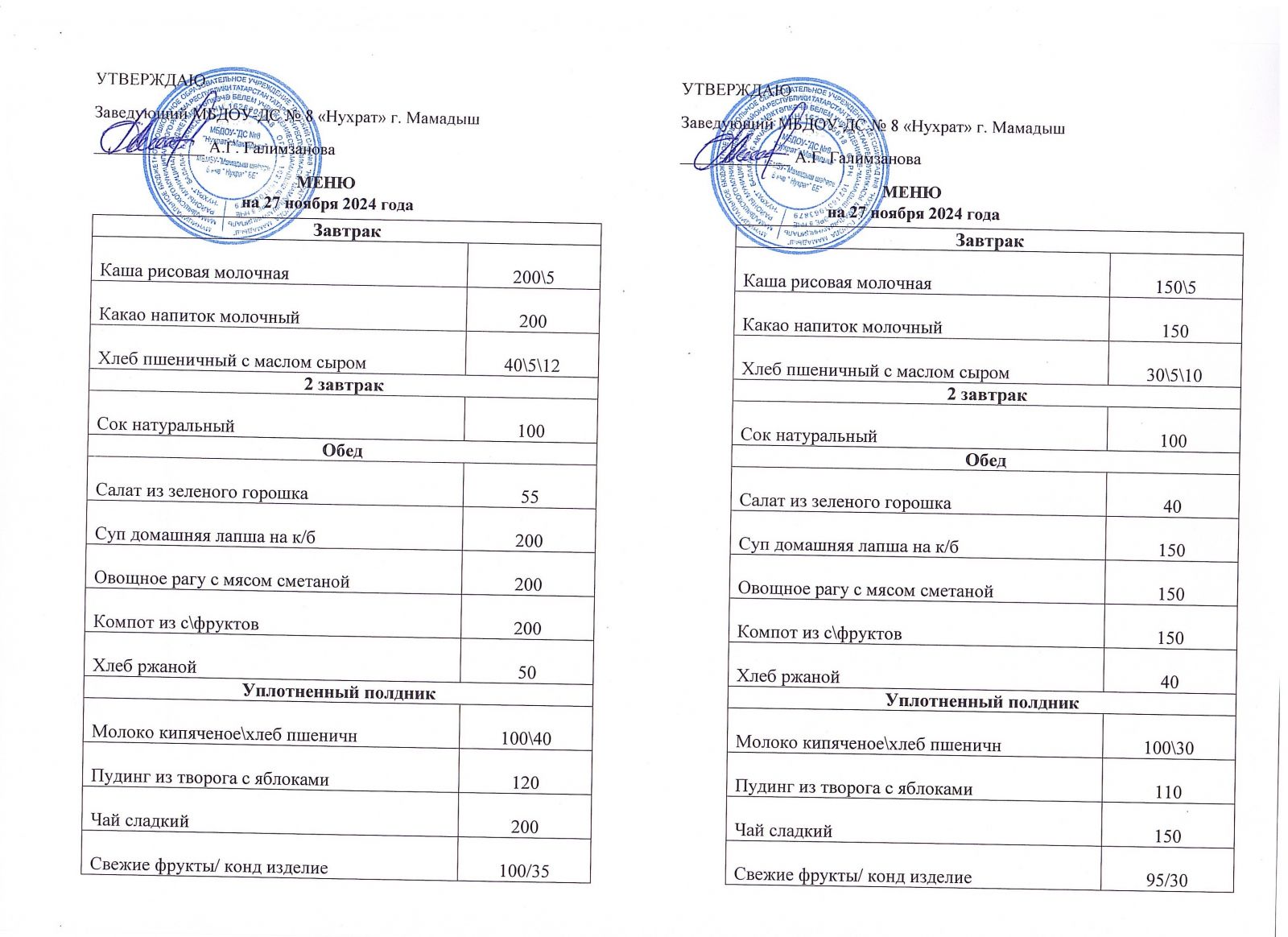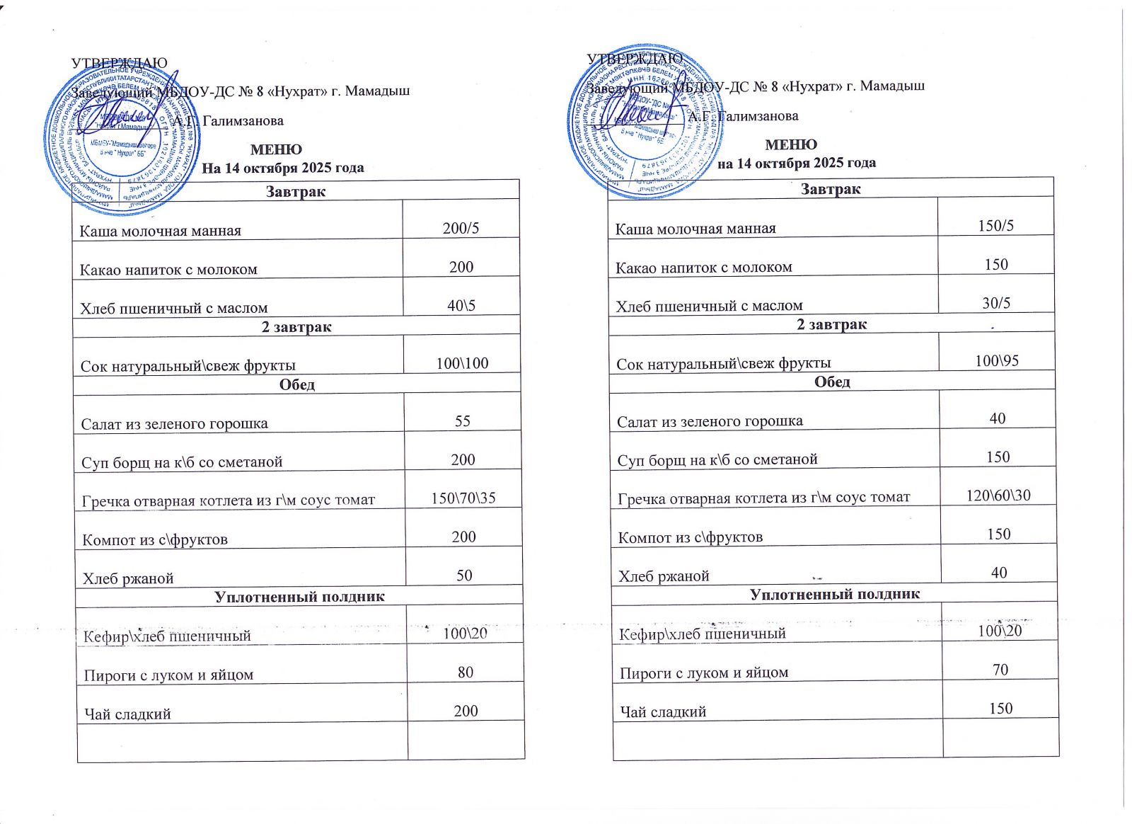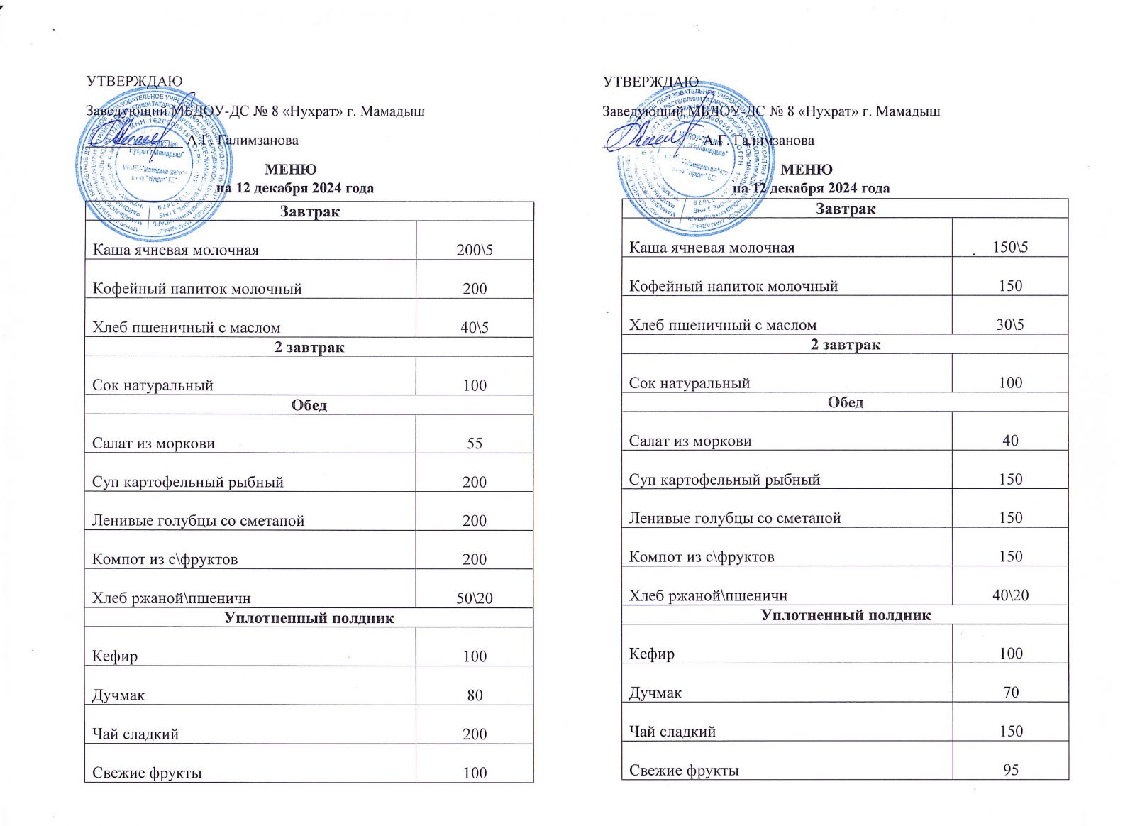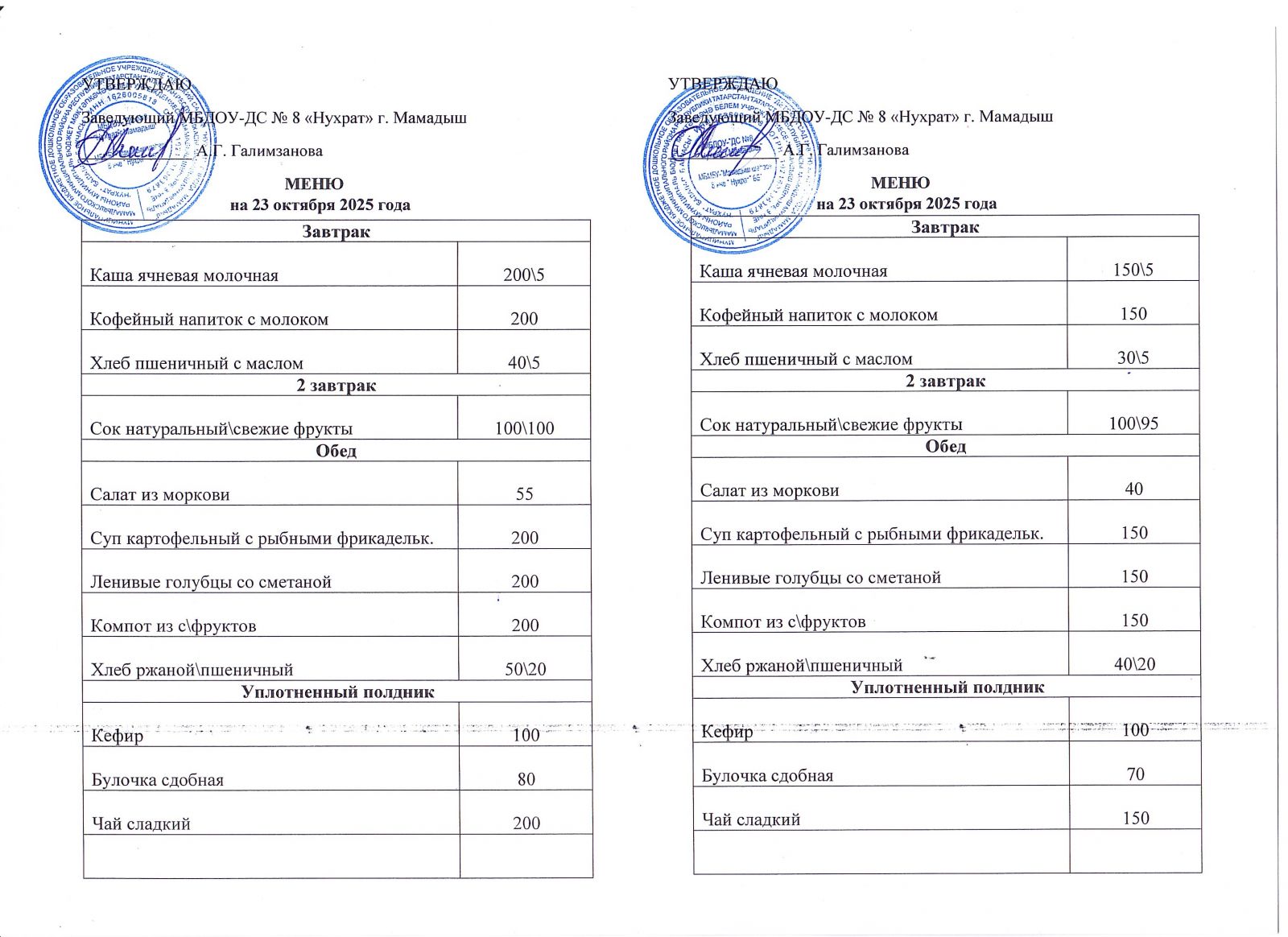 Примерное десятидневное меню для организации питания детей с 1,5 до 3 лет