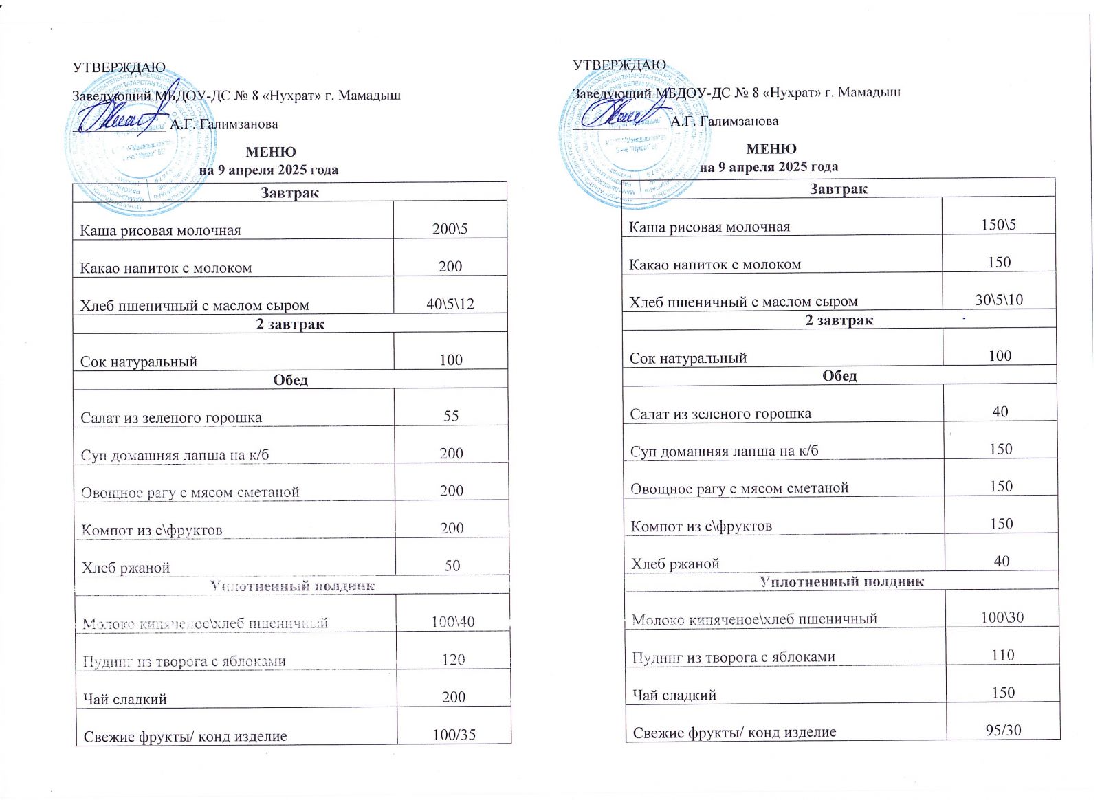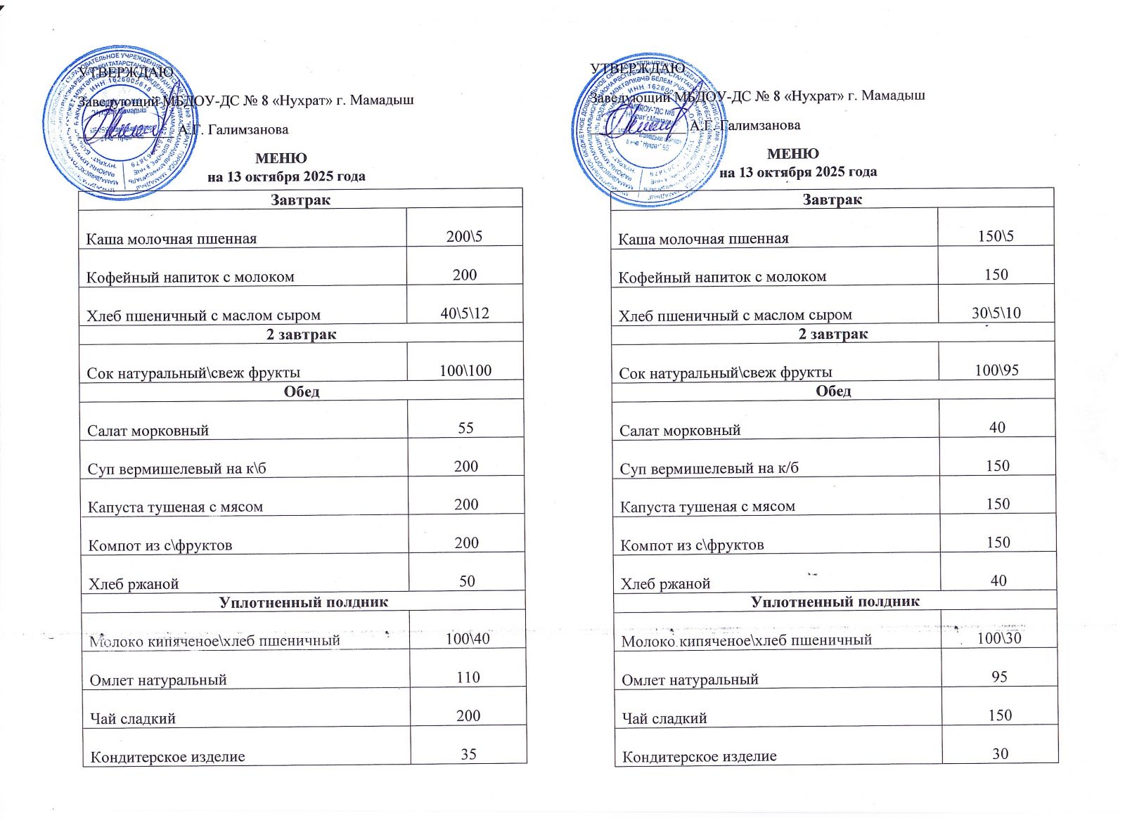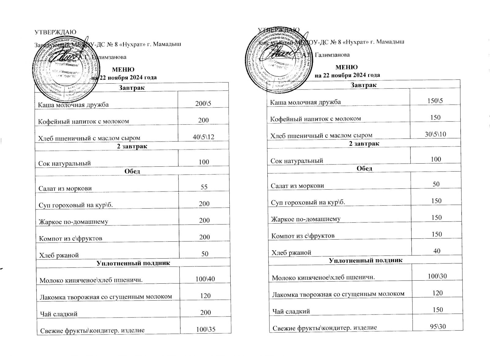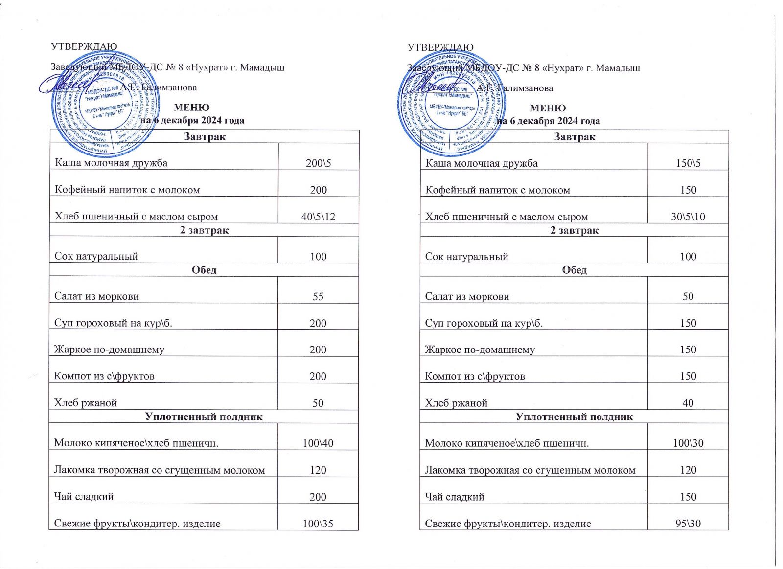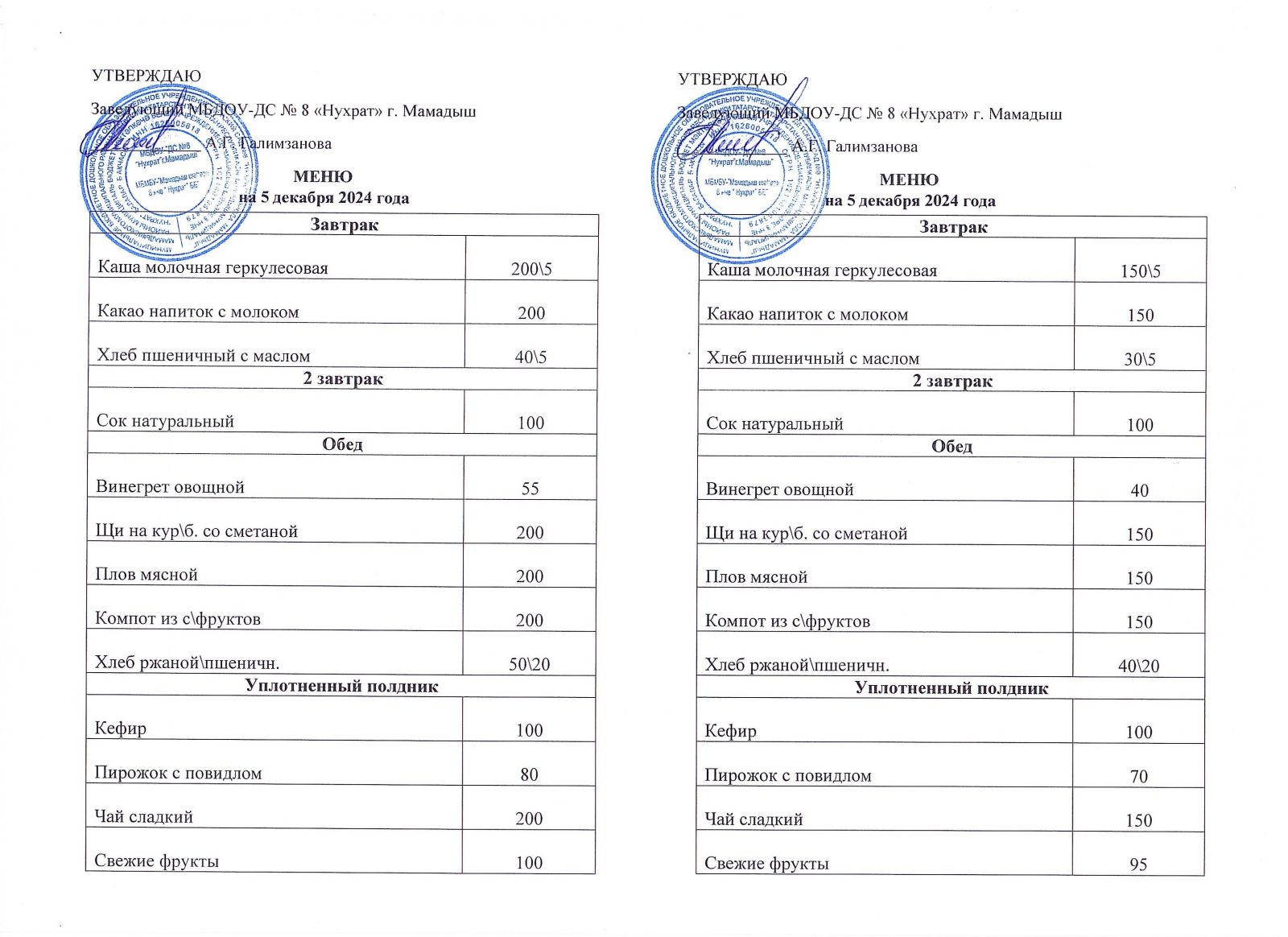 Примерное десятидневное меню для организации питания детей с 1,5 до 3 лет