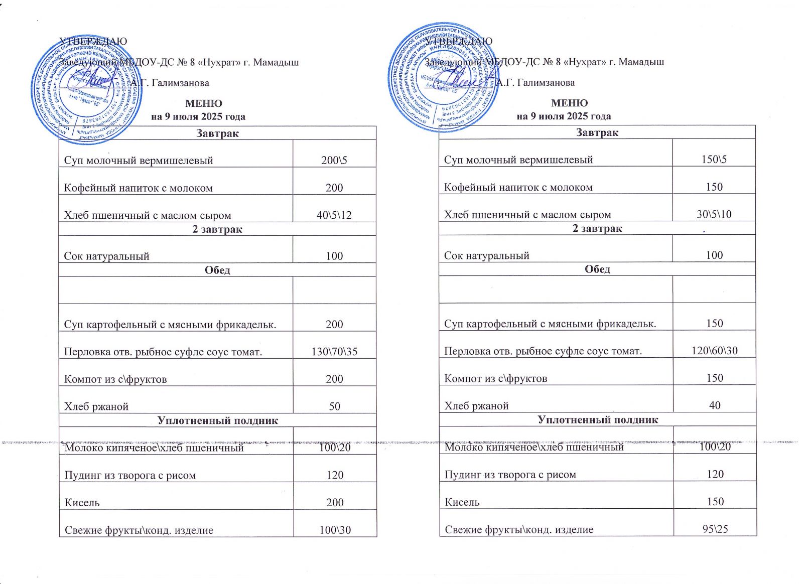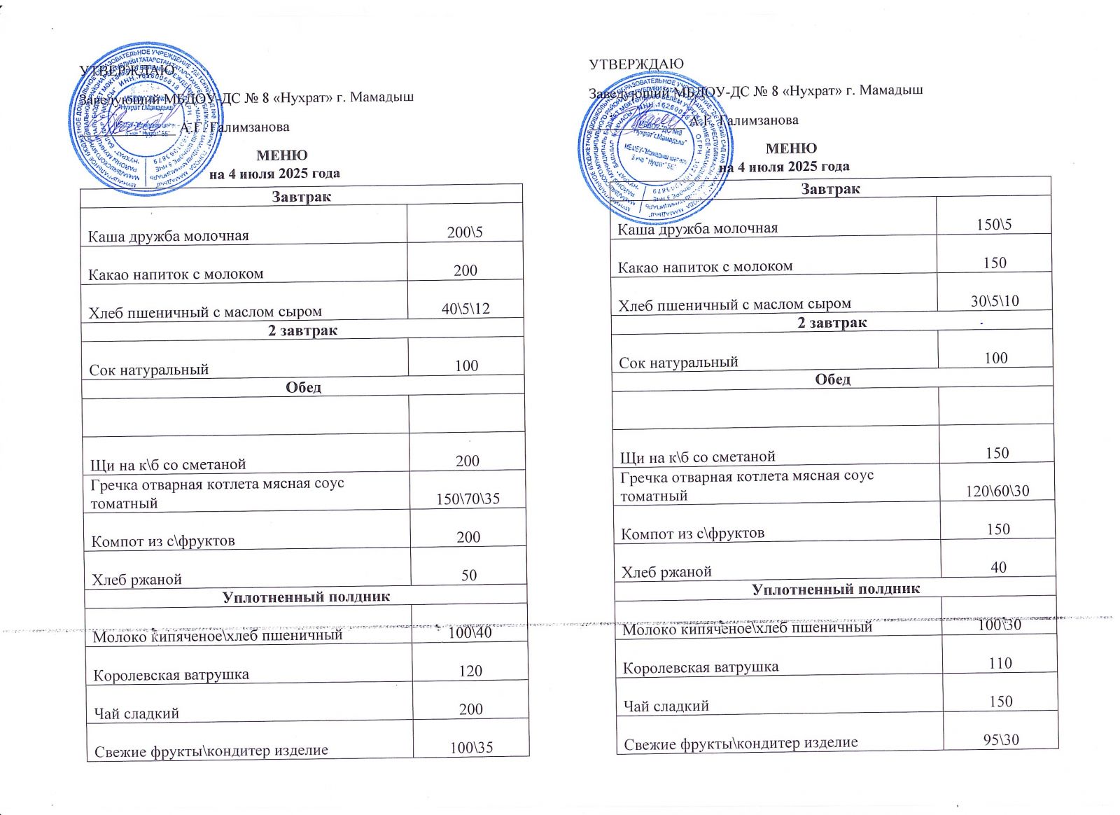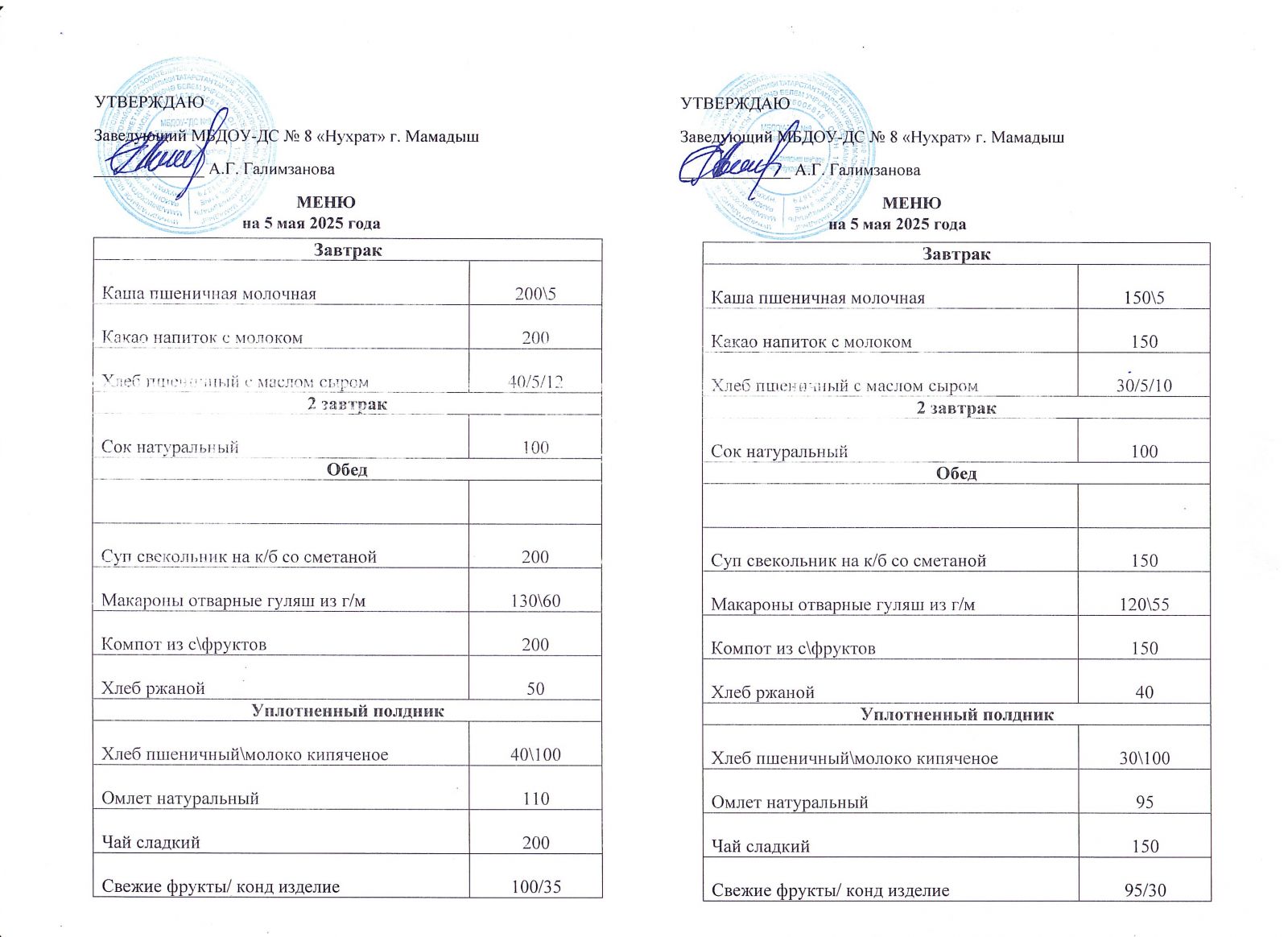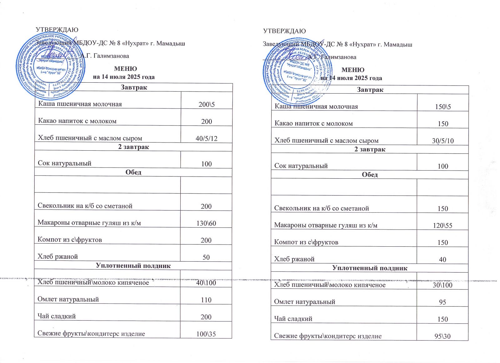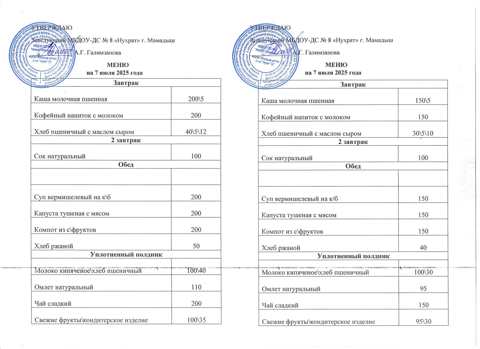 Примерное десятидневное меню для организации питания детей с 1,5 до 3 лет