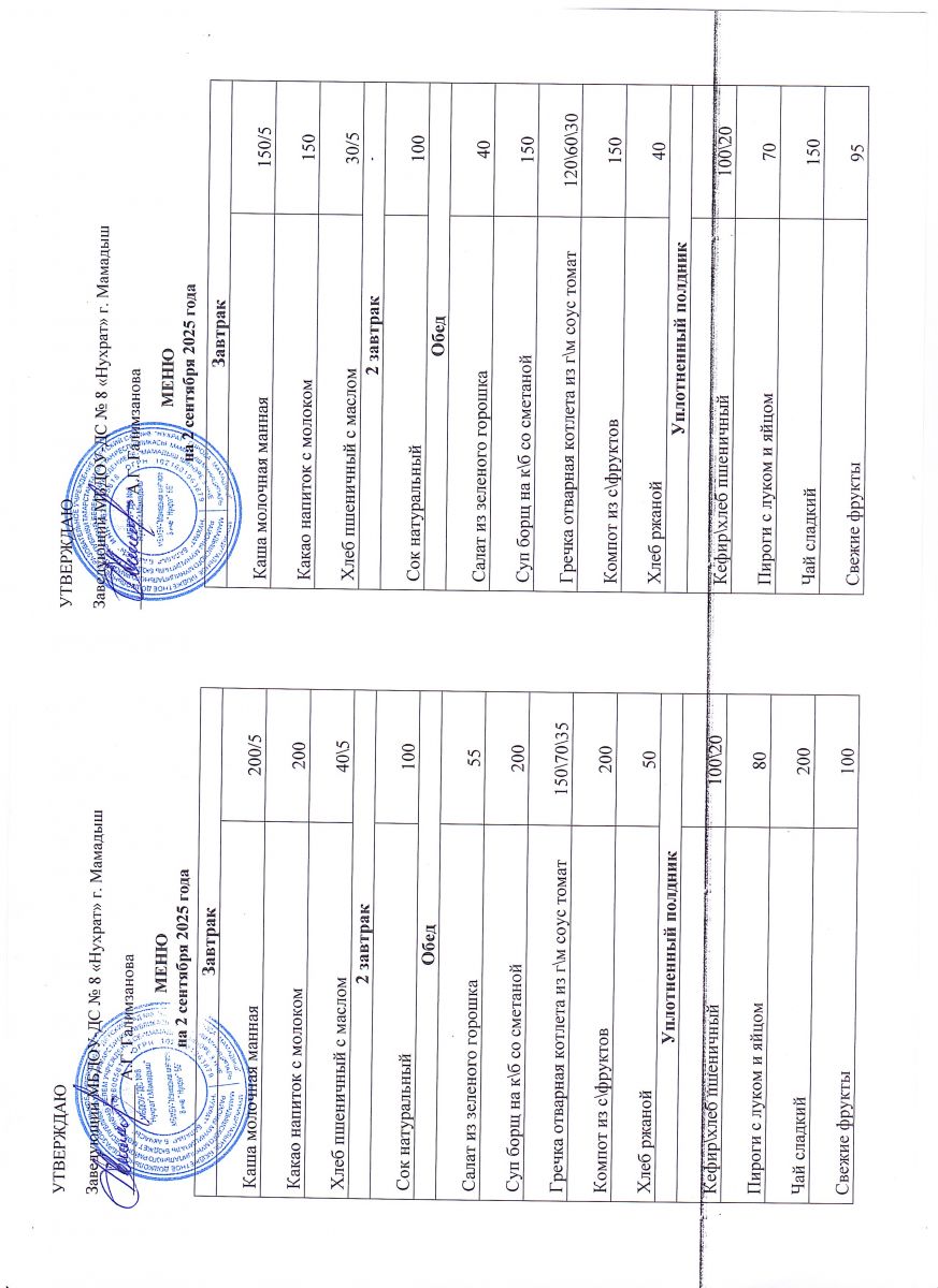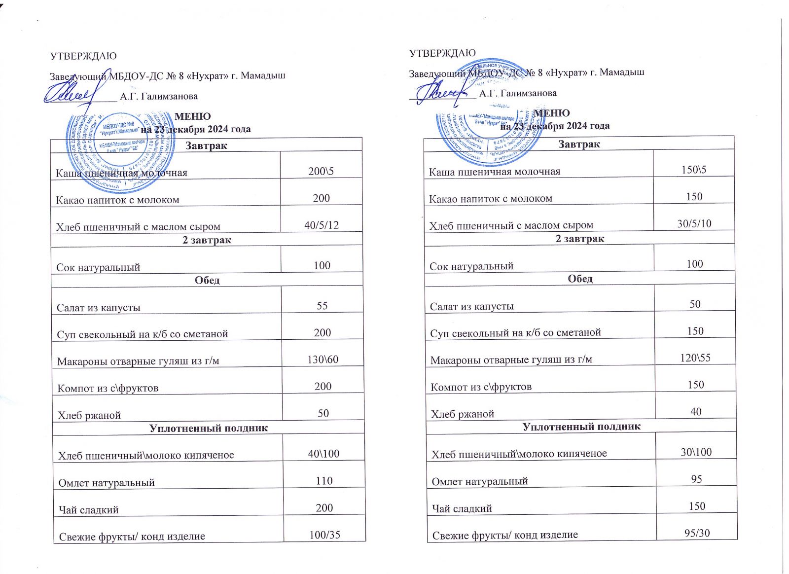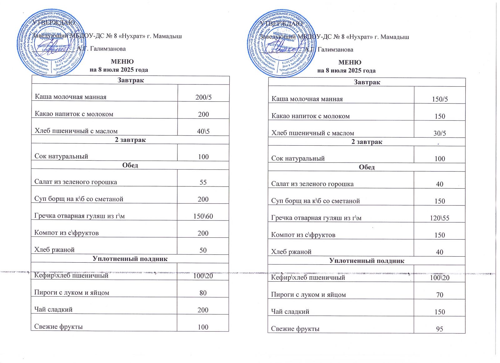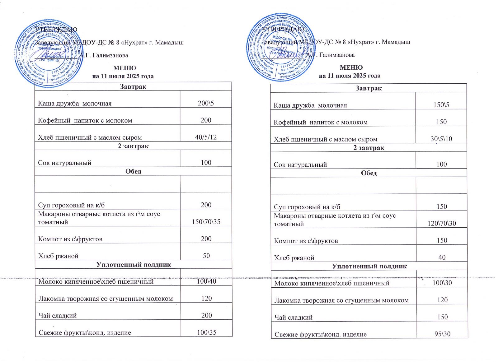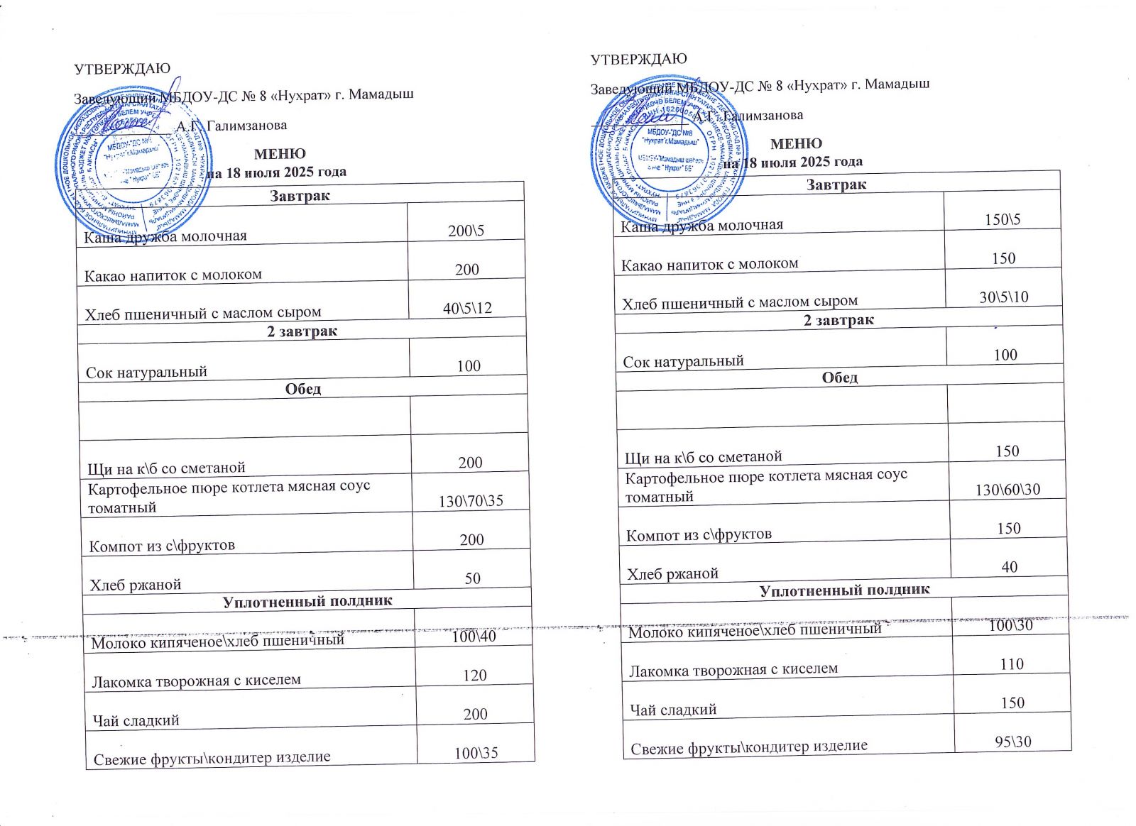 Примерное десятидневное меню для организации питания детей с 1,5 до 3 лет