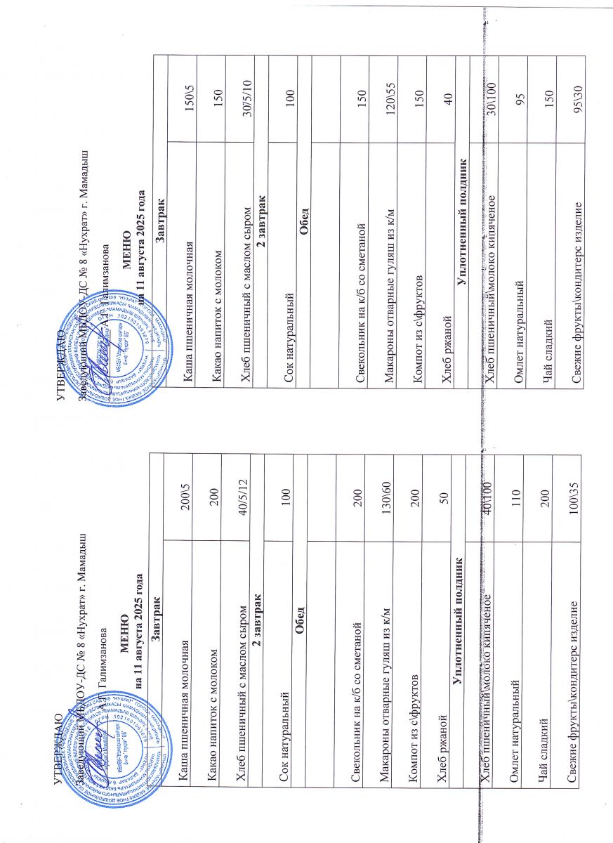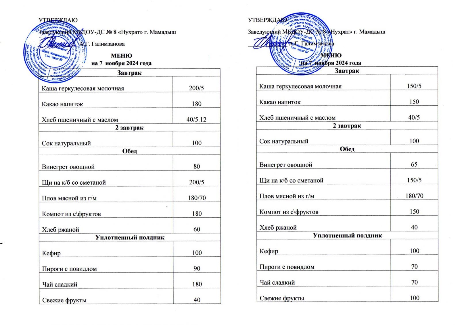 Примерное десятидневное меню для организации  питания детей с 3 до 7 лет